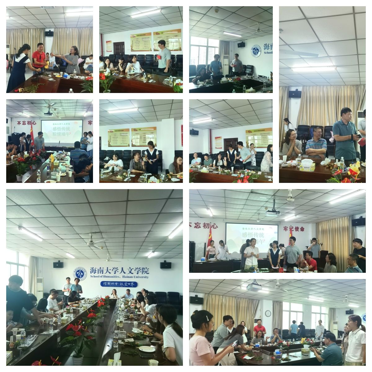 在社科楼会议室B719举办了“感悟传统 粽情端午”共庆佳节活动。全体教职工参加了此次活动。