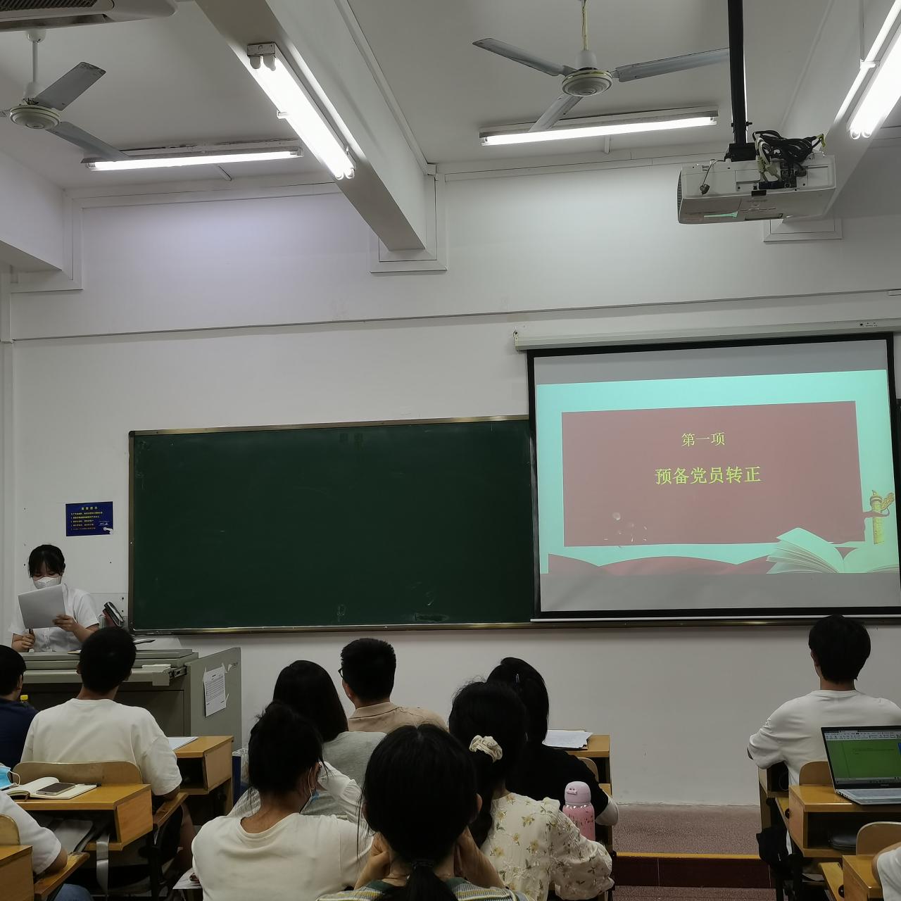 会议第一项,预备党员转正。预备党员分别进行发言,在预备考察期的一年中,各位预备党员在思想上回顾党史党章,时刻警醒自己刻苦努力,脚踏实地,铭记党的初心与使命;学习上积极为教师资格证考试、研究生考试备考,获得校级奖学金、优秀毕业论文评选资格、优秀志愿者等优秀成绩;工作上不忘社会实践与社会服务,参与校园交通、征兵宣传、乡村支教等志愿活动。