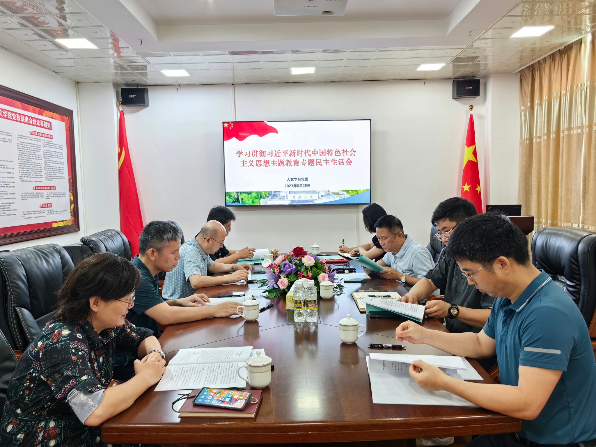 学习贯彻习近平新时代中国特色社会主义思想主题教育专题民主生活会在社科楼B615会议室召开。校党委常委陈明宝和党政办张国超到会指导,学院党员院领导参加会议,非党员院领导列席会议。