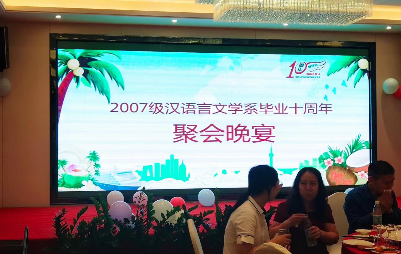晚上7:00,校友们的秩年晚宴正式开始。参加此次晚宴的主要有2007级汉语言文学专业的26位校友、特邀老师孙晓媛、张平、公衍峰和人文传播学院刘复生院长。主持开场后,由老师们发表讲话,同学们自主发言。宴会上,在用餐之余,大家通过一些小游戏活跃气氛。用餐结束后,所有成员留下了今日最后一张大合影。