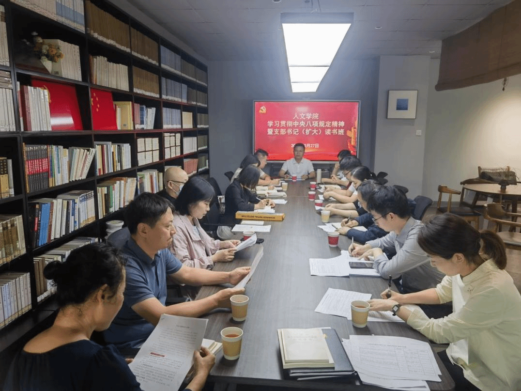 党委在社科楼B621会议室举行深入贯彻中央八项规定精神学习教育第1期读书班暨党支部书记工作(扩大)例会,学院党委委员、党支部书记及支委,全体行政管理人员参加。