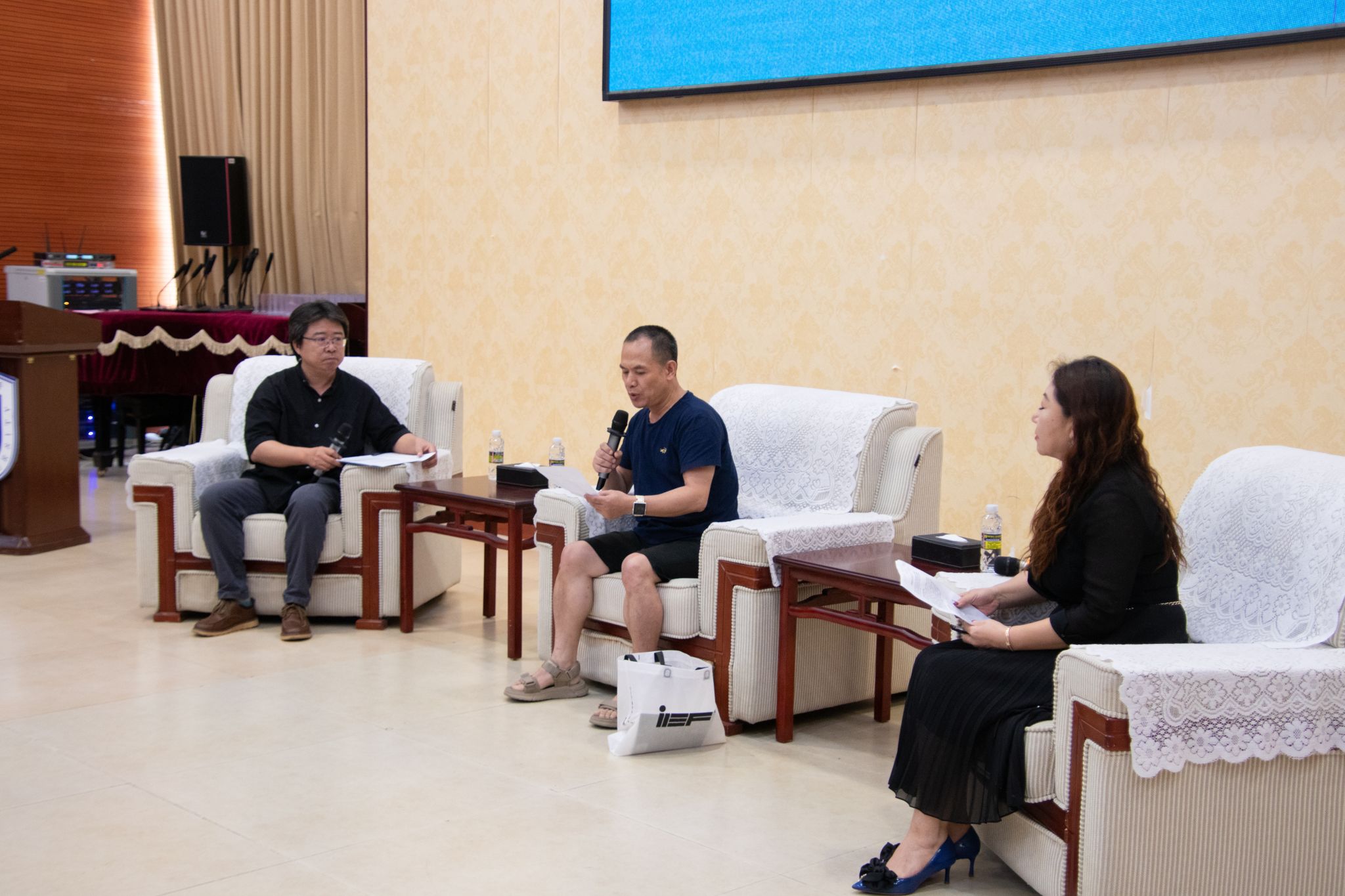 文聘元(中)、雷艳(右)介绍《西方文明4000年》等著作