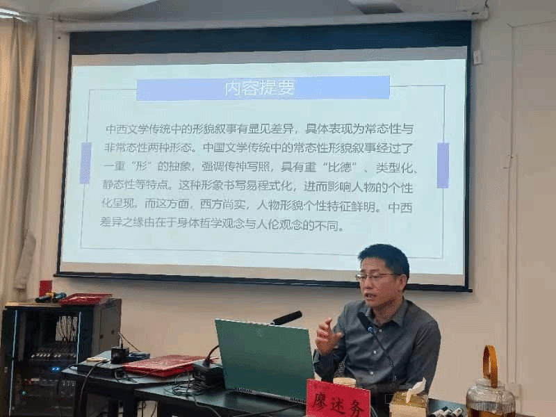 廖教授根据“常态性人物形貌叙事”和“非常态性人物形貌叙事”的区分,以丰富的文学作品为例,总结了中西常态性形貌叙事和非常态性形貌叙事的异同。继而,他以《诗经·硕人》《登徒子好色赋》《荷马史诗》《金驴记》等为例,说明了中西常态性形貌叙事的差异:中国古代文学强调传神写照,形貌叙事较为含混,具有重“比德”、静态性、类型化等特点;西方文学尚实,力求客观逼真,人物形貌个性特征鲜明。他又以中国古代神话传说和《宣室志》《西游记》《聊斋志异》《神曲》《德拉库拉》等作品为例,强调说:西方拘于写实,形式略显单一;而中国之叙事则动静相宜,形式变幻多样,展现出丰沛的想象力。中西差异之缘由在于身体哲学观念与人伦观念的不同。