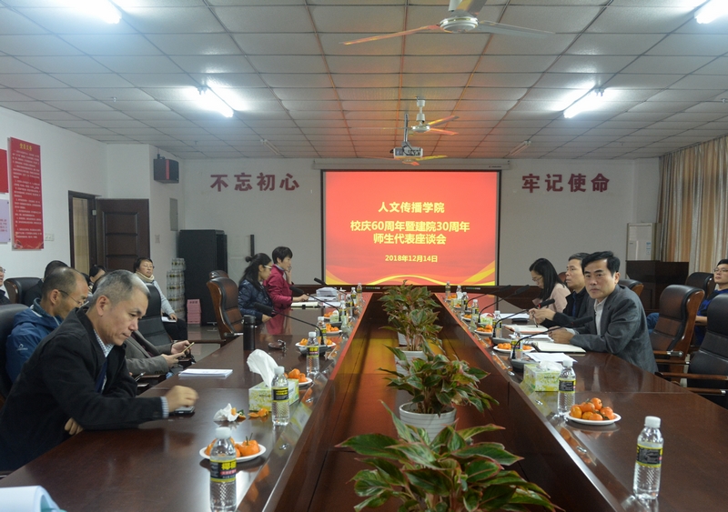 12月14日下午,人文传播学院在社科楼B719会议室召开“人文传播学院校庆60周年暨建院30周年师生座谈会”。会议由学院党委书记华世佳主持、院长刘复生、党委副书记孙晓媛、副院长石晓岩以及师生代表参加会议。