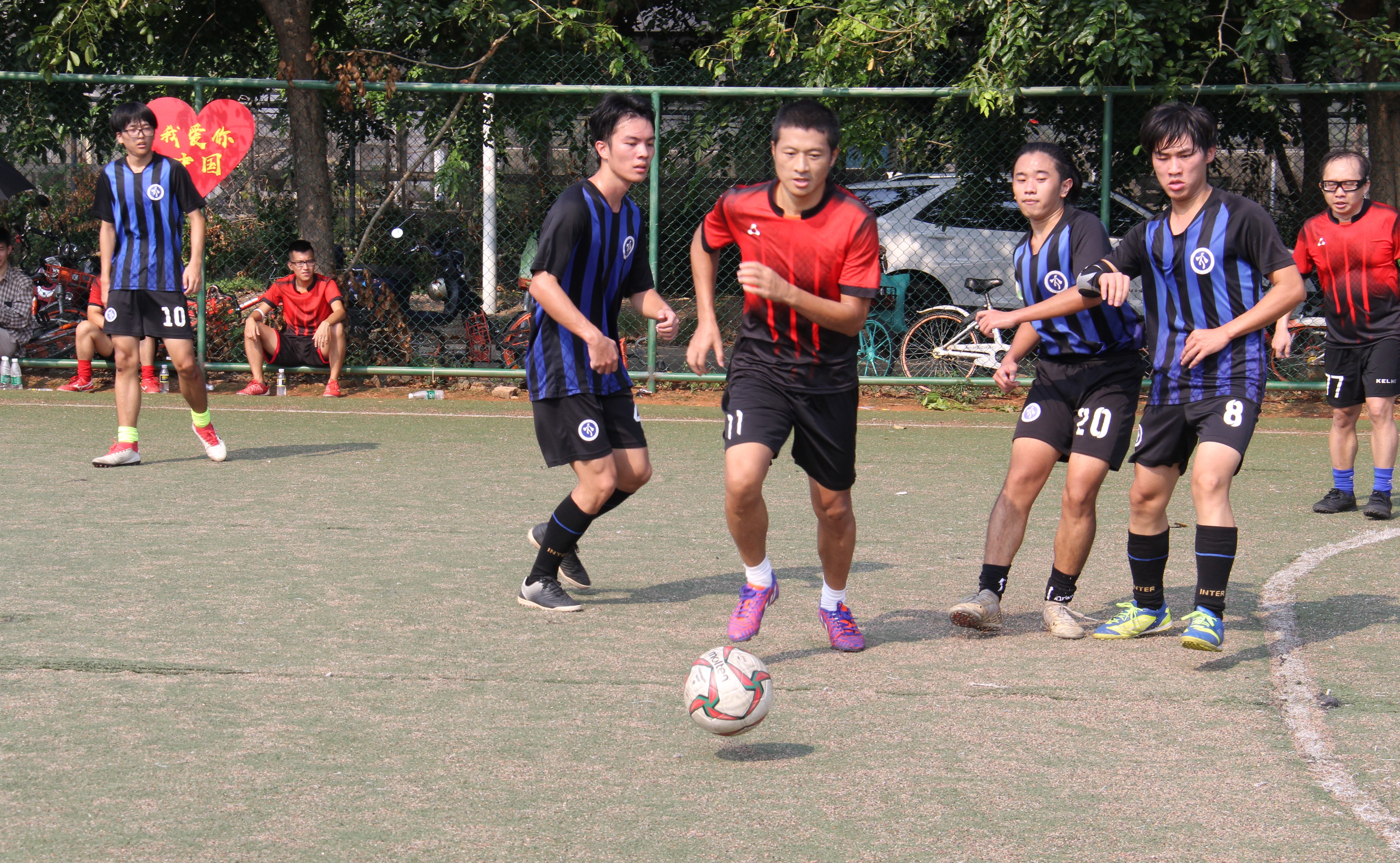 下半场第21分钟,学生队20号快发边线球,10号球员传出横传,4号球员钱贤国将球打进,学生队1-2教工队。下半场第27分钟,学生队10号与4号球员再次打出完美配合,10号金相宇将球打进,学生队2-2教工队。