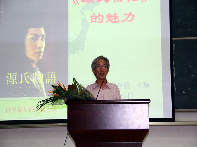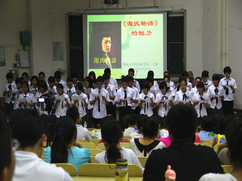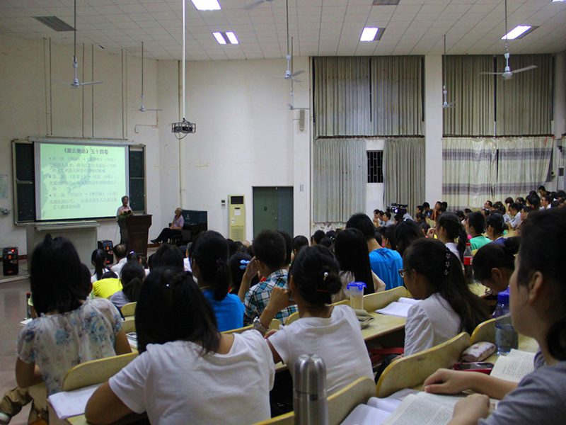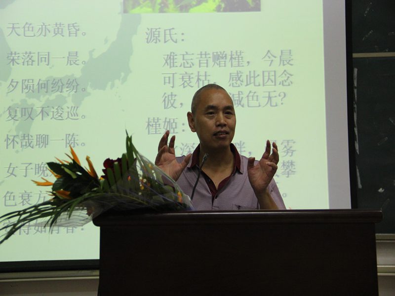 2号教学楼108,东方经典系列讲座第十一讲约请国内研究并参与翻译《源氏物语》的学者,曾留学日本东北大学、京都大学,现任教暨南大学的王琢教授,携手走近我们一衣带水的邻居日本,走近穿越时空的文学巨著《源氏物语》,感受“世界已知最早的长篇小说”的魅力。 主持人《古典与现代》主编杨国良教授深情朗诵日本经典民歌“爷爷的老时钟”歌词后,旅游学院12级日语班的同学轻柔的歌声悠悠响起,演唱了一首蕴含深意、深沉并略带悲伤的日文老歌,在场听众的心静极了。 王琢教授缓步来到台前,深鞠一躬,用平静的语调讲述起日本旷世巨作《源氏物语》。王教授讲到,《源氏物语》成书于公元1008年,全书用毛笔写就,之后几个版本的抄录工作尚要花费几年时间,试想当年作者紫式部所用精力、所用纸张,让人敬佩之情陡升;且书中大量的诗词足以引发我们对当时风物的无限遐想。在这样的前提下,让我们带着虔敬,走近作者紫式部,走近《源氏物语》的世界,感受它巨大的魅力。 王教授从作者紫式部的生平及《源氏物语》的成书讲起。紫式部生卒年不详,生活在日本男权公卿时期,紫式部此名,“紫“取自《源氏物语》中人物紫姬,“式部”取自其兄的官职,作者真名不见于世,可见当时女子权力低下至何等程度。紫式部幼时已显天资,其父因而发“此女生不为男儿身,真吾家之不运也”的感叹。紫式部生活的时期日本学术界称之为“摄政关白”,其特点暗示了女子当时作为政治工具的悲惨命运。通过王教授讲到的女房文化,我们对日本宫廷后宫的等级制度可窥一斑。在《源氏物语》成书前,日本盛行和歌,宫廷贵族或作和歌,或作汉诗,其所用文字有严格限制,男子用“真名(汉字)”写作,女子则只能用“假名(汉字部首)”,于此处再现那时日本女子权利之有限。《源氏物语》成书前日本虽然已有两部“物语”,而紫式部用天才般的写作手法,在前人的基础上开一先河,变相的创作出新的文体。日文文字合计一百四十万字左右的《源氏物语》,前后大约用时二十年,作者紫式部卒时不满四十,闻之感想横生。 《源氏物语》的主题围绕何为“理想中的人”或“理想中的贵族”。全书五十四卷,可分为三部:第一部讲述主角光源氏积极向上、光明的人生史;第二部讲述光源氏的晚年——从无尚的荣华到绝望的苦恼;最后一部则关于光源氏的后代,一心求道的主人公“薰”,如何直面爱与救济。在第二部中,一卷名为《云隐》,只有卷名,没有文字,真为一绝顶创作,所取之名及创作构思留无限想象于读者,直教人拍案叫绝。王琢教授描述第一部为多彩的恋爱与至上的荣华,解读第一部的前提是需要了解日本当时实行一夫多妻制,并有走访婚、娶婿婚及娶妻婚的不同婚姻形式。王教授娓娓而谈,光源氏令人惊异的爱情冒险紧锁听众心弦,感叹之声不绝于耳。同时,他抽丝剥茧地将光源氏之恋给予归类,包括与藤壶的不伦之恋、与葵上和夕雾的婚配之恋、与六条御息所的难断之恋、与空蝉、夕颜(玉鬘)、末摘花、花散里的寂寞之恋、与紫上的理想之恋、与胧月夜的挑战之恋,与明石上的左迁之恋。由此听众在繁琐的故事章节中得辟新径,豁然开朗。在第二部——从荣华的巅峰到绝望的苦恼中,王教授从三公主下嫁的多义性、紫上去世及光源氏的归宿三个方面进行剖析,见解精辟。王教授指出,紫式部在书中谈及的女性、爱情、生死、佛道及用什么来拯救人等问题,发人深省。对比同样具有“人的有限性”的光源氏,我们在生活中还是要追寻“内心的平静”。由此可见紫式部留给我们宝贵的精神财富是多么的巨大。就此处王教授对“文学”发表评论说:“文学的根本是要把你熟悉、或不熟悉的人生公示给人们。带着有色眼镜看《源氏物语》,品论光源氏淫乱、摧残女性等等说辞,今天我们看来,相当可笑”。书籍最后一部分讲述了薰的求道与爱/救济的可能性,是关于光源氏退场后其后代的生活及选择。 作为包含四百多个人物,三十多个主角的庞大巨著《源氏物语》,它的艺术魅力在哪里呢?王教授讲到,首先是和歌与汉诗的运用。而更大的魅力在于紫式部发挥了超常的想象力,把“虚构”运用到了极致,虚构了从未存在过的“光源氏”,读来栩栩如生,紫式部的才情非同一般。另外,整个故事的线索及其复杂,以第一部为例,围绕藤壶、紫上两条主线插入多条辅线,结构漂亮异常,令人扼腕。通过虚构心胸广阔的光源氏,紫式部将“人何以成为人,如何不随波逐流,创造自己的人生”这一主题呈示给我们,留下无限的想象、思考空间。同时,《源氏物语》中对汉诗文《长恨歌》的巧妙引用写成了日本的《长恨歌》,千年前的紫式部对“互文性”这一写作手法烂熟于心。 主持人杨国良教授简洁点评之后,外国语学院陈鸣芬院长开启互动环节,即将赴日访学的体育部季占忠老师接着提问,艺术学院画家傅世林与听众分享他在日本的切身经历以及在场的同学问了相关问题,王教授均一一作答。