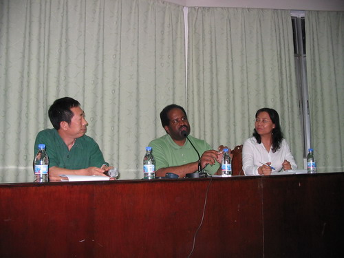 中国诗歌研究中心的邀请,美国当代著名汉语诗人、西蒙斯大学教授阿法先生于2005年4月12日来人文传播学院讲学。人文传播学院院长孙绍先教授热情会见了来宾并简要介绍了学校和学院的有关情况。其后,阿法教授为学院师生们作了题为 “汉语诗学”的演讲,他以幽默的语言、诗人的睿智和渊博的知识赢得了阵阵掌声。演讲由徐敬亚教授主持,副院长焦勇勤、著名诗人王小妮,我校兼职教授、《天涯》杂志主编李少君等在座。 注:阿法教授执教于美国西蒙斯大学,他非常热爱中国文学和中国文化。2004年,他在美国举办了中国诗歌节,宣扬中国文化,得到了美国学术界和民众的广泛关注。他主办的诗歌节被誉为“美国有史以来规模最大、影响最广的中国诗歌节”。//www.hlznl24.com