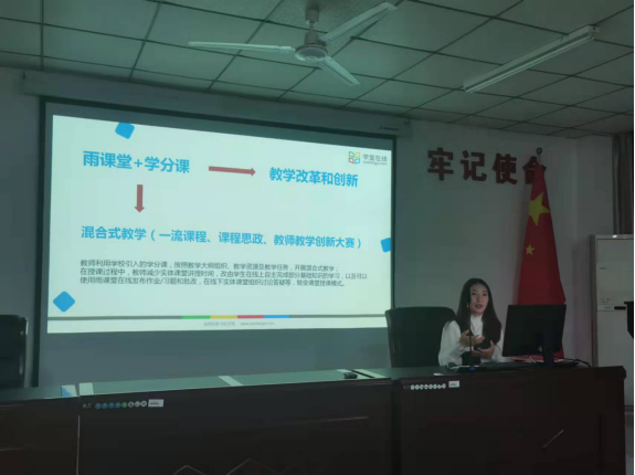 本次会议的第二个环节,是邀请到雨课堂学堂在线的培训讲师陈鑫玉进行培训讲授。培训主要内容包括:雨课堂开展授课(慕课资源引用、直播弹幕、课堂小测、课堂小结报告、考核维度设置、在线考试应用;课件制作、课件推送);云盘使用;利用雨课堂教学数据进行金课申报;学堂在线资源引用介绍,开展混合式教学,学分制改革课程引用等内容。