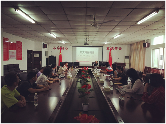 本次培训邀请了学院朱小宁老师前来授课,结合自身多年文字工作经验,以“党政机关企事业单位公文写作”为主题,通过经典案例,详细地讲述了公文种类、公文格式及行文规则,深入浅出地解析了各种公文的主要特点、基本结构、写作技法及注意事项。