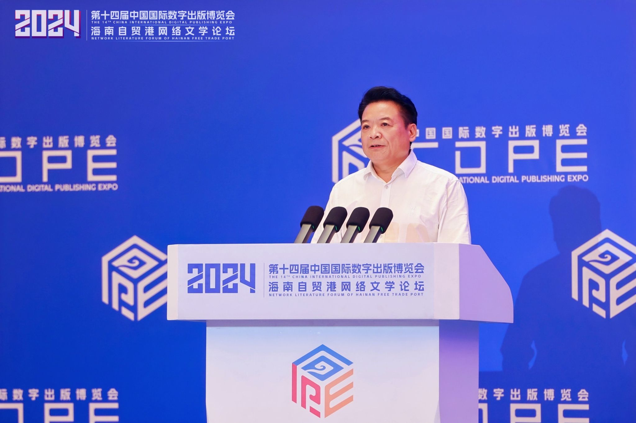 王斌在论坛的主旨演讲中指出,海南自贸港是我国新时代全面对外开放的桥头堡,有着文化产业创新和文化对外贸易的制度优势,具有优秀的网络文学创作队伍和良好的网络文学产业基础,海南将以促进网络文学繁荣带动数字文化产业的大发展,促进以网络文学为内容源头的数字文化产业与文旅产业的融合发展。