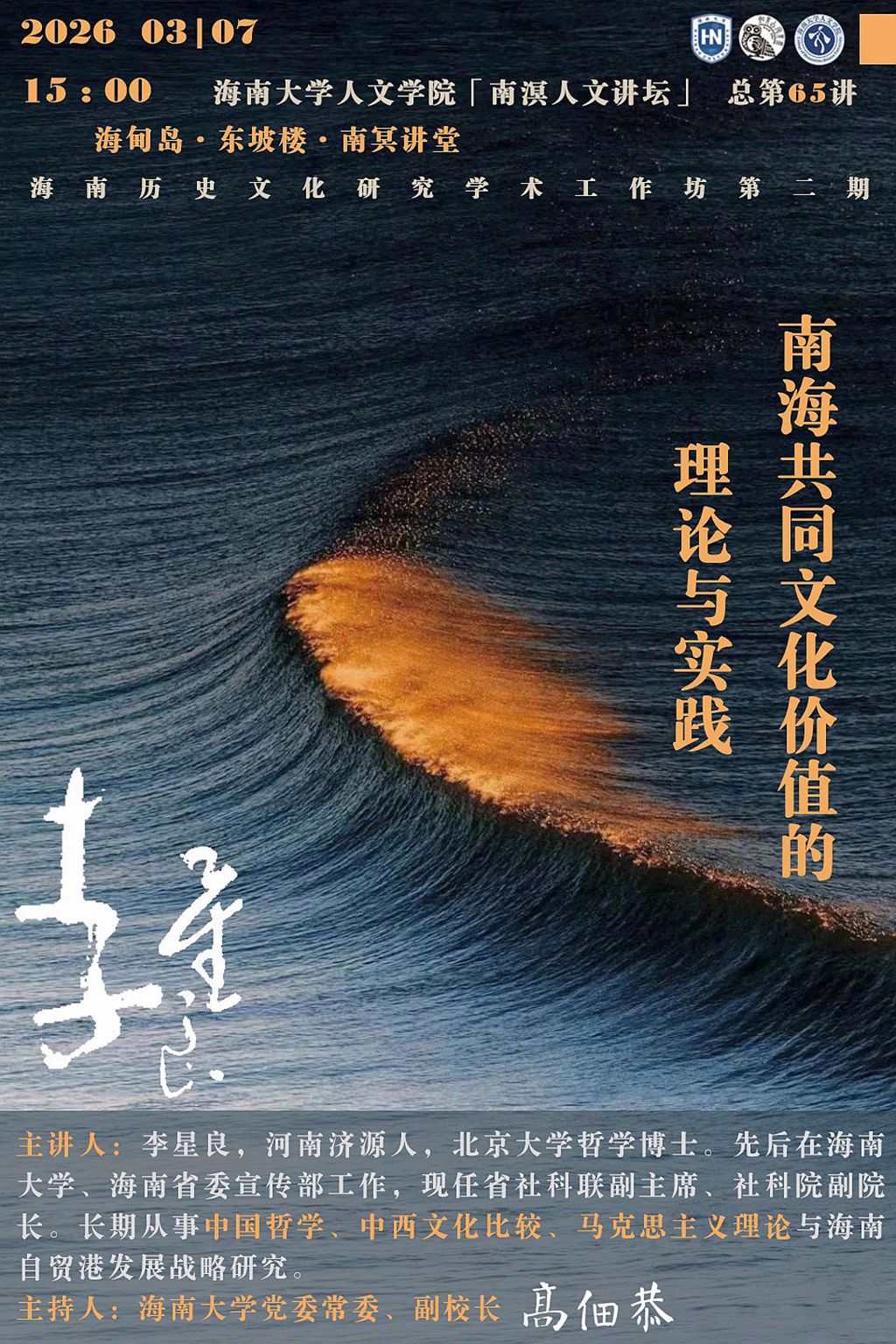【学术预告】“南溟人文讲坛”第六十五讲:李星良 南海共同文化价值的理论与实践
