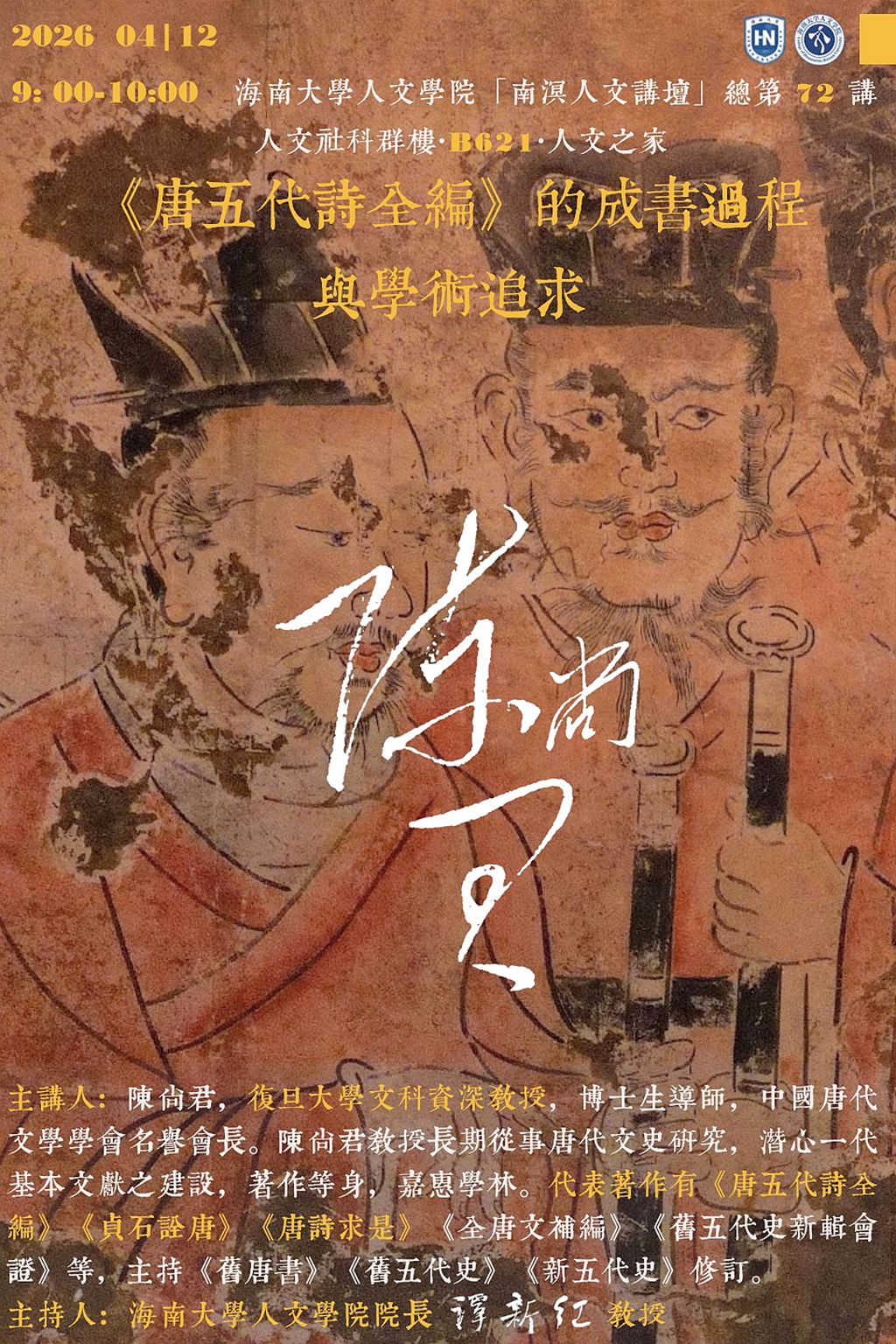 【学术预告】黑料正能量 “南溟人文讲坛”第72讲 《唐五代诗全编》的成书过程与学术追求