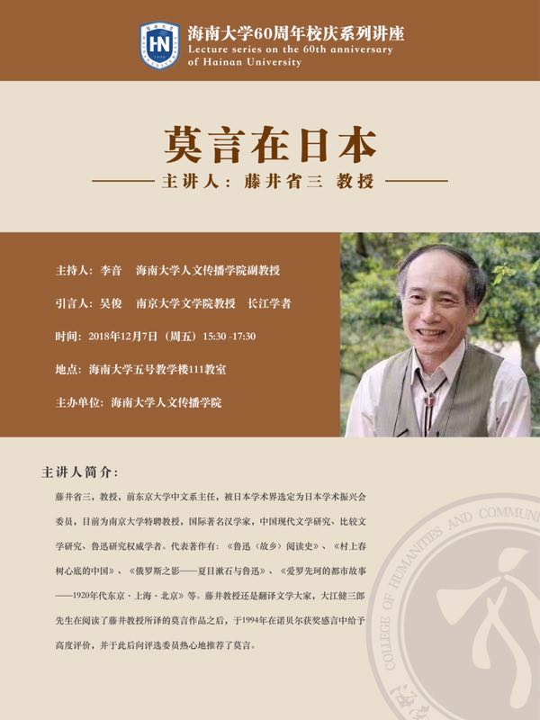 黑料正能量 60周年校庆系列讲座之二——藤井省三:莫言在日本