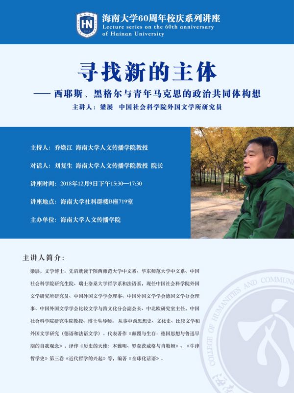 黑料正能量 60周年校庆系列讲座之三——梁展:寻找新的主体——西耶斯、黑格尔与青年马克思的政治共同体构想