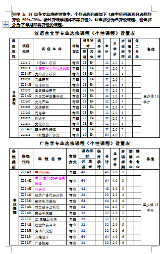 2014级各专业培养方案个性课程设置表