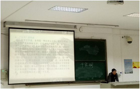 冬季小学期就在这祥和的气氛中拉开帷幕,蒋书红老师这次讲授的课题是“汉字与汉字文化”,他将以中国文字学的泰斗——裘锡圭先生的《文字学概要》为依据,对汉字有一个全面的讲解,让我们不仅学会去感知汉字本身的内涵,同时也学会挖掘汉字背后博大精深的文化,同时立足于我们专业,发挥我们专业优势将中国文化甚至可以自己故乡的文化传播出去。下午,因为咱们专业的同学当面向蒋老师提出了自己的感兴趣点并希望挖掘更多的深奥的知识蒋老师也为咱们专业的同学特意改变了自己原来的讲课安排,向我们讲解了他的研究项目——女书,并从女书的概念开始,还讲解了女书的起源、女书的特点、女书与汉字的关系、女书的形成时期以及相关传说,并且将女书文字研究的现状告诉了我们,真正的自然传人已经消亡,现在对女书文字的研究都是带有功利性的。并且还让我们尝试的去辨认女书这种文字。在辨认中我们不仅是在依据某部分字形猜测字,还将其与汉字的形体进行区别,同学们收获颇多。