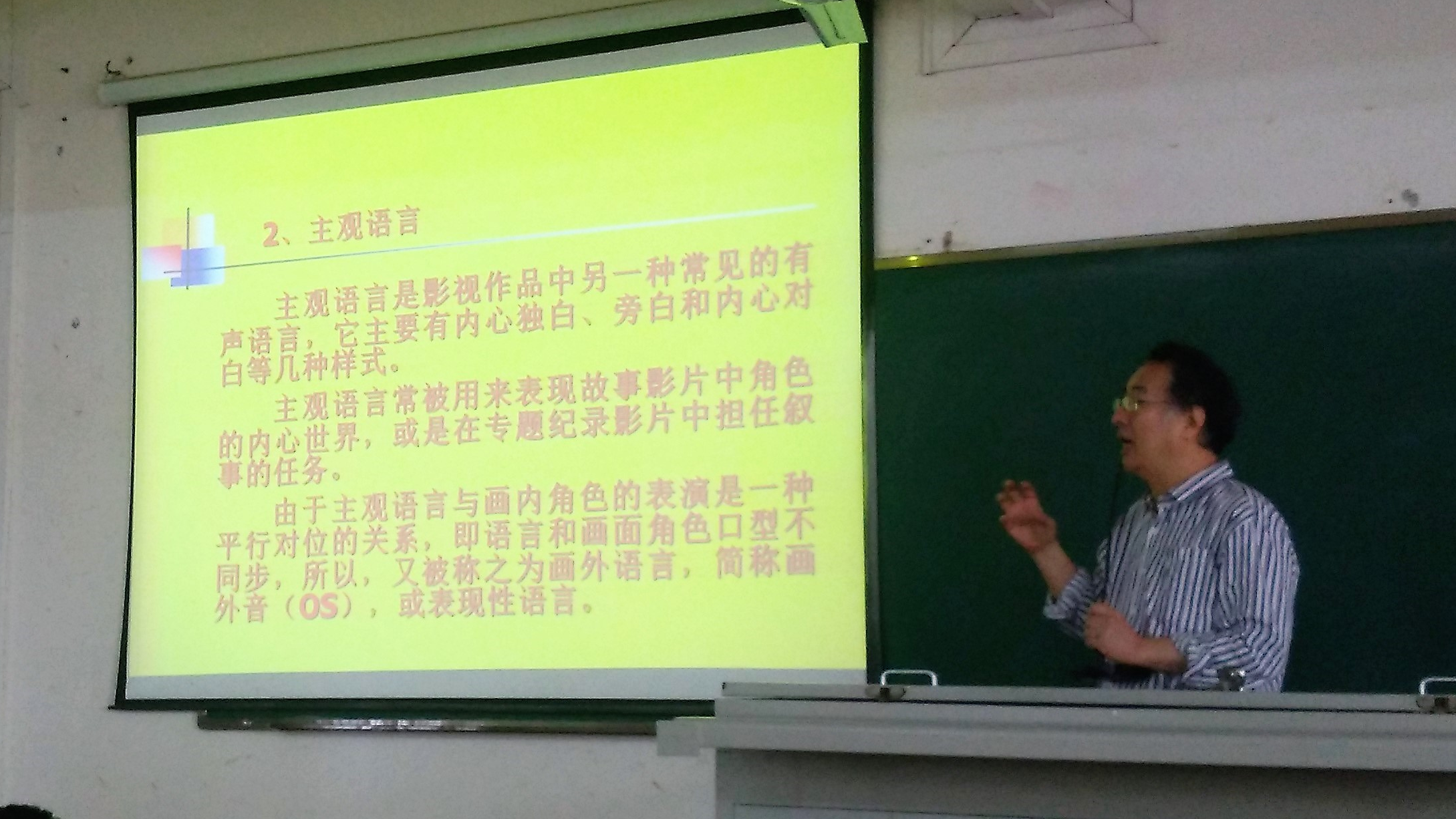 课程伊始,通过鞠斐老师的介绍,同学们对姚国强教授有了基本的了解。姚国强教授,中国高等院校影视学会副会长、常务理事、学术委员,中国高等院校影视学会微电影专业委员会理事长,中国电影家协会电影声音艺术工作委员会会长,中国录音师协会电影录制制作专业委员会主任委员,中国电影评论学会理事。同时,姚国强教授在影视声音艺术创作及理论,影视声音艺术史,影视声音美学,影视声音人类学、影视声音艺术教育学等多方面造诣深厚,是学界的领军人物。