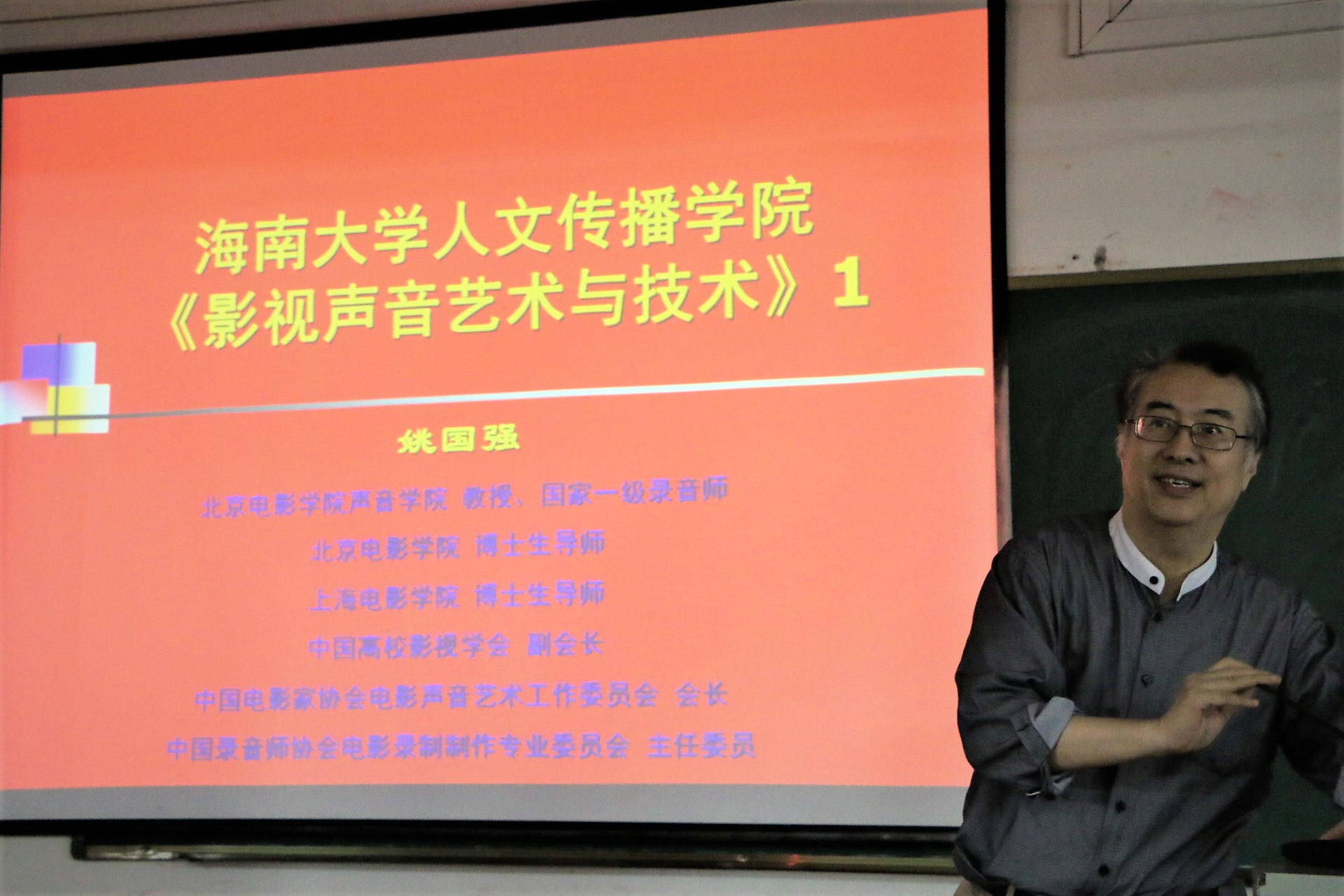 人文传播学院2017年冬季小学期戏剧影视文学专业《影视声音艺术与技术》课程在2号教学楼110教室开讲。北京电影学院博士生导师、国家一级录音师姚国强教授应邀为黑料正能量