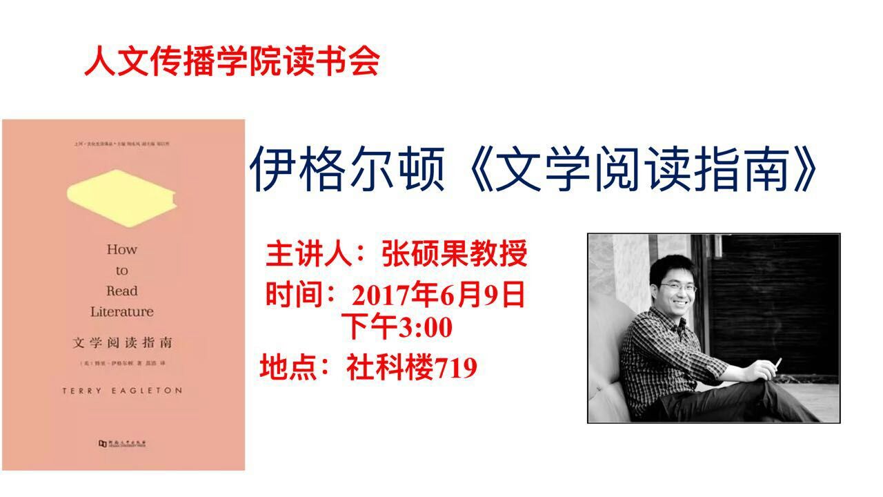 在社科楼B719举办《伊格尔顿》读书会。本次读书会由张硕果老师主讲,朱杰老师主持,部分学院教师、中国语言文学专业研究生及部分本科生参与了本次读书会的讨论。 张老师指出,伊格尔顿重拾尼采所谓“慢读”的传统,借助对文学形式和技巧的细察,唤起读者对语言的敏感——从文学的语言、形式入手,政治批评才有其可能。《文学阅读指南》提供了一种基础性的感受和辨识工具,帮助我们拷问和质疑在文学领域中诸多常见的预设,形成有效地谈论文学问题的方式。将伊格尔顿的文本细读解读方式与传统的马克思主义批评和形式主义“新批评”相区别,方能转变传统的阅读惯性思维方式。文学阅读应为一次“解放性”的过程,通过阅读开创新的体验世界和认知世界的方法,提供创造未来新世界的力量。