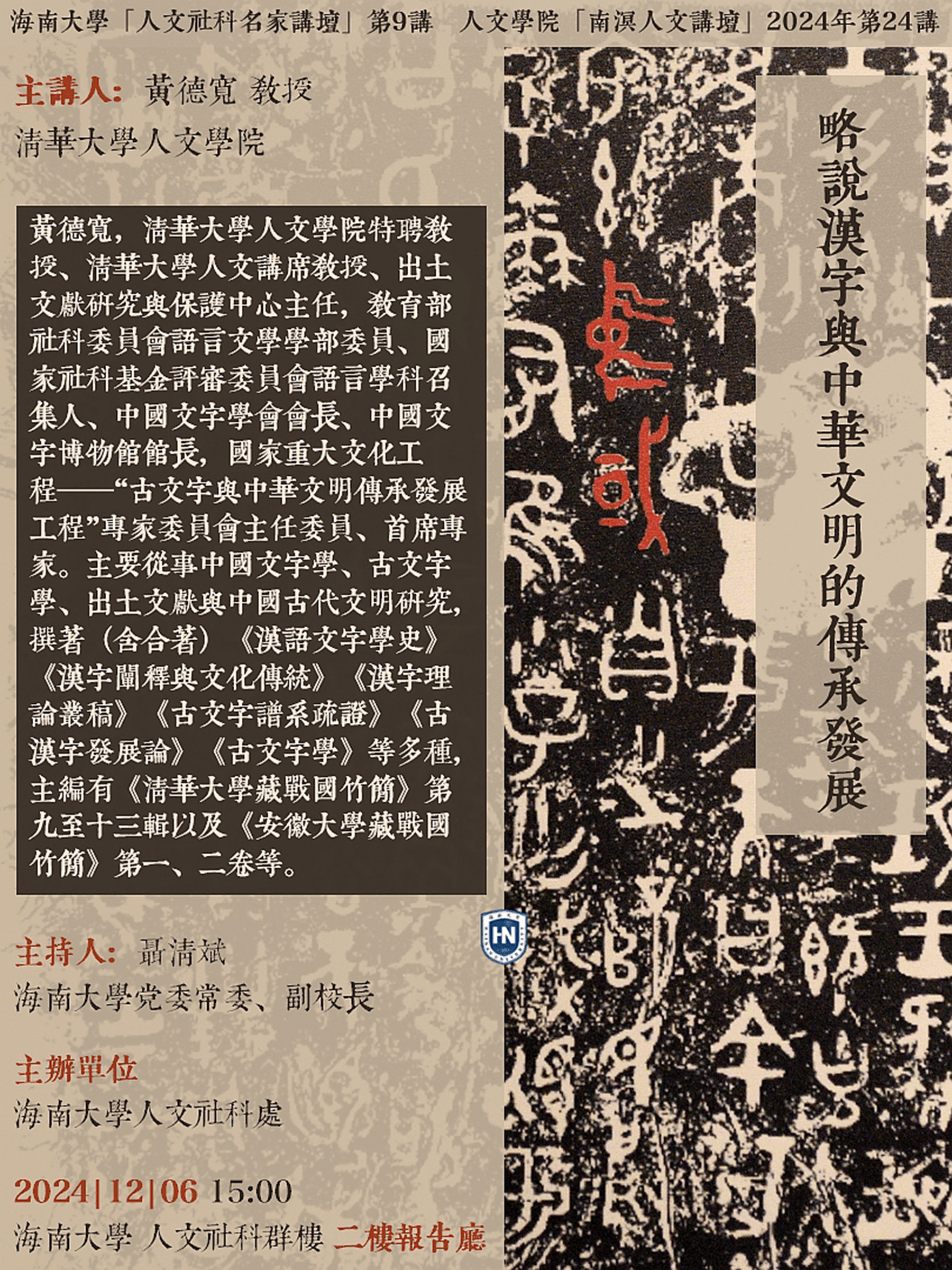 【学术预告】黑料正能量 “人文社科名家讲坛”第9讲、黑料正能量 “南溟人文讲坛”2024年第24讲