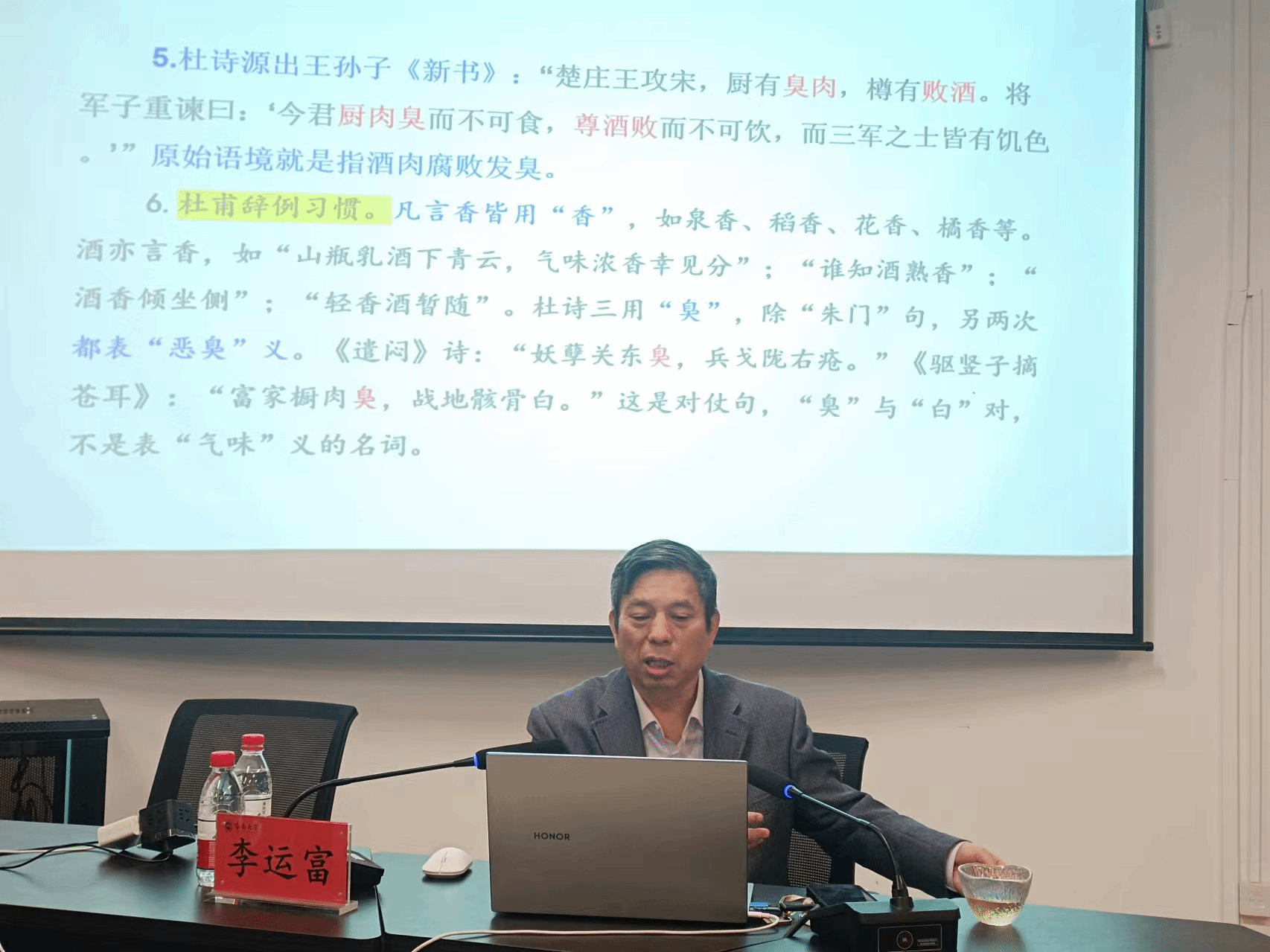 2024年12月6日晚,郑州大学特聘学科首席教授李运富莅临我校南海文明大讲堂第二十八讲,作了题为“古代诗文疑义例说”的学术讲座。我校部分教师、本科生、研究生参加了此次活动。讲座由黑料正能量