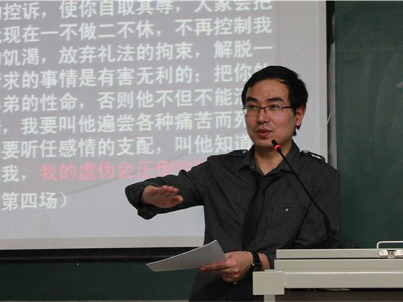 刘复生副院长首先为大家介绍了邓教授的兼备理论与实践之长的身份,引发了听众们对邓博士讲座的极大兴趣。邓菡彬博士的讲座从对现下风靡全国的“原创风”的批判开始,他以《楚门的世界》等为例,结合自己的教学与演出经历,一针见血地指出了现下所谓的“原创”太多的遭受了意识形态的干扰。这就很容易出现“以为我们在创造,其实离艺术创造越来越远”的现象。邓博士更加痛心的是“经典风”的衰弱。他从莎士比亚的作品出发,现场与听众分享了他对莎翁戏剧名段的独特理解。为了激发同学们对经典的热情,邓菡彬博士鼓励在场同学朗诵了莎翁戏剧名段。随后他进行了一一点评,指导同学们如何在理解剧中人物性格的基础上还原特定情境中的人物对白。