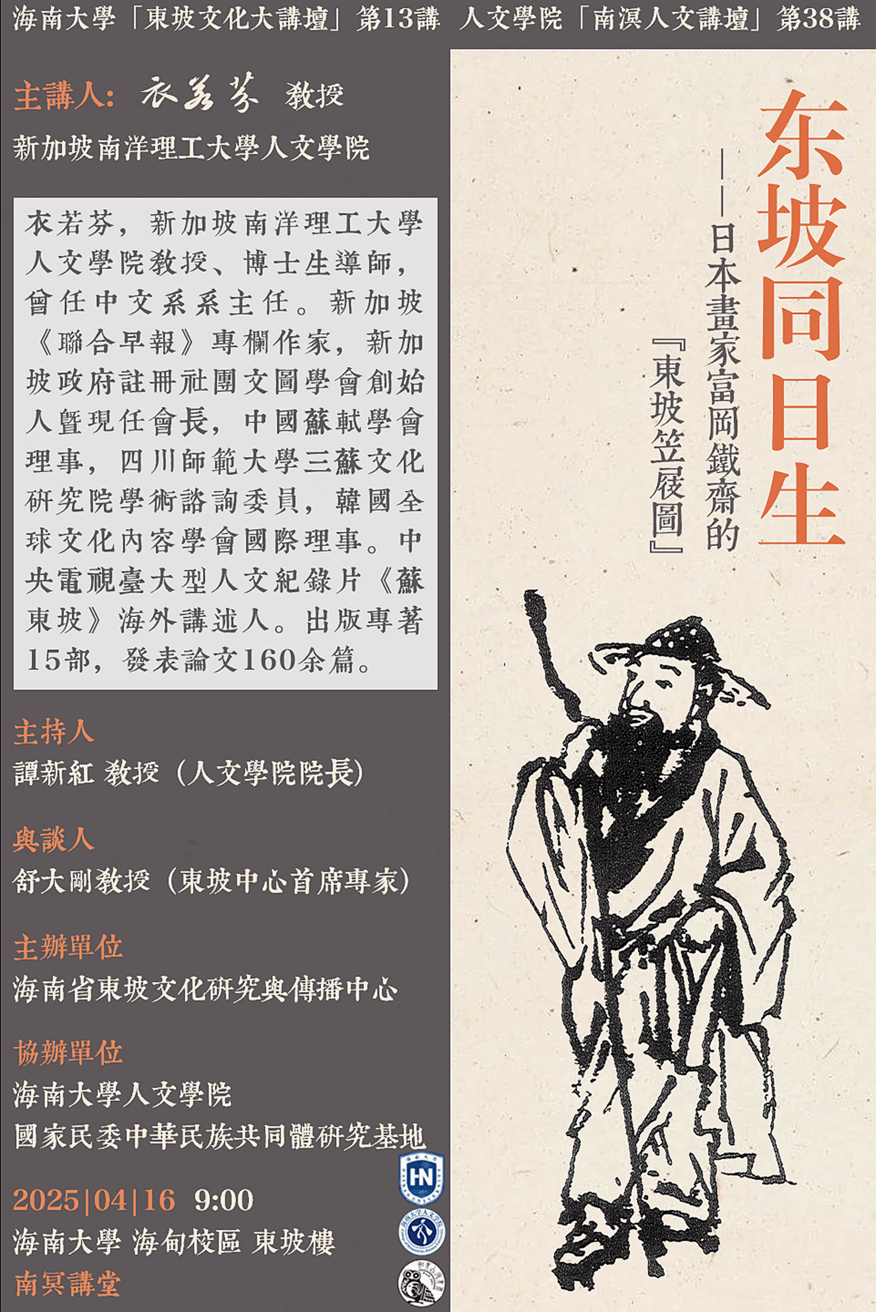 【学术预告】黑料正能量 “南溟人文讲坛”第三十八讲 衣若芬 东坡同日生——日本画家富冈铁斋的《东坡笠屐图》
