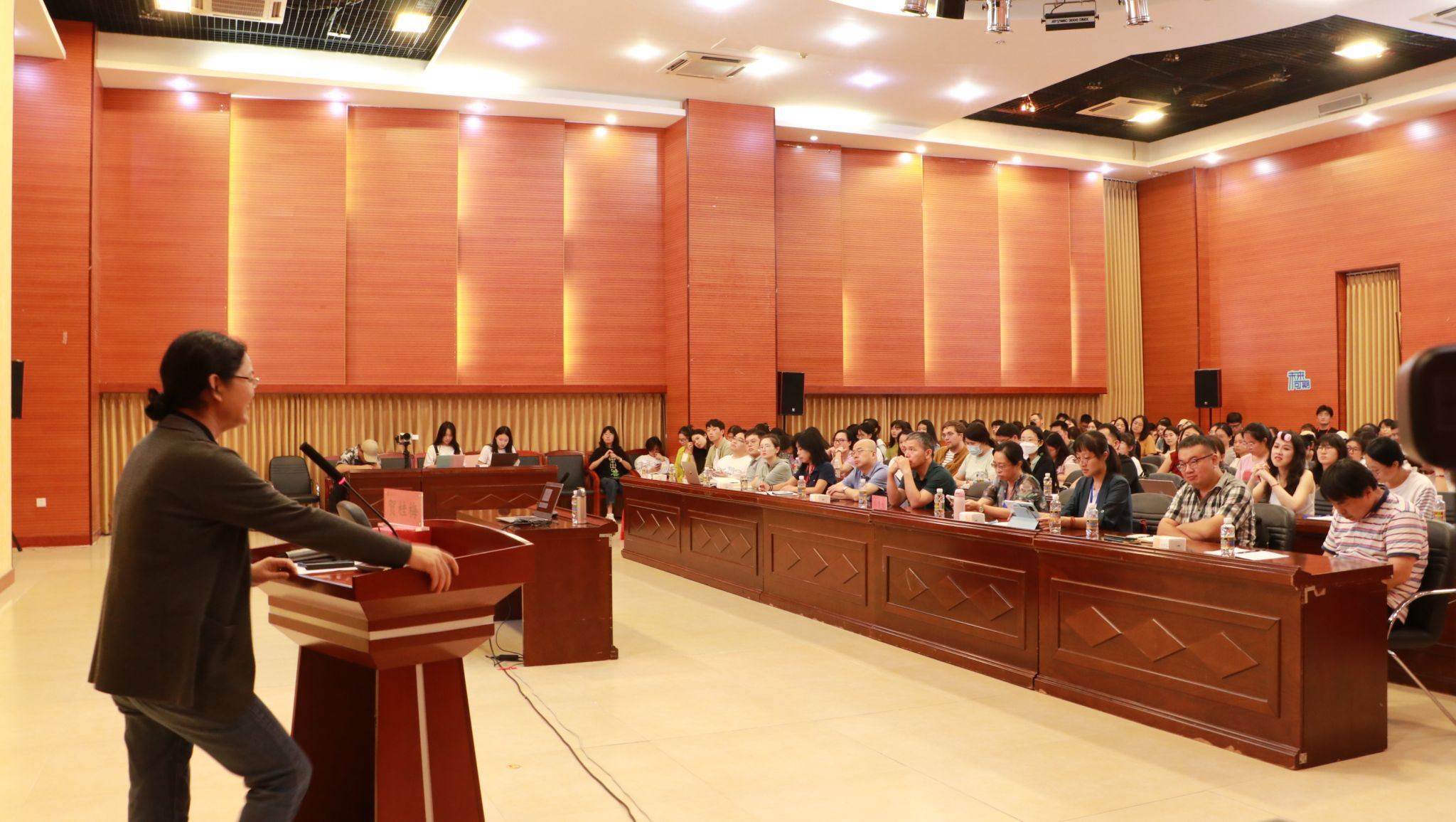 贺教授从丁玲的生平入手,围绕其文学创作,通过解读《“三八”节有感》等文本,阐释了妇女解放的原点问题,指出中国妇女解放运动的独特性——女性解放运动与社会解放运动同步展开。研究者需在总体解放的视野中探讨女性议题。报告深入浅出,娓娓道来,既有理论深度,又有个案分析,引入了学科研究的新视角,传递了深刻的学术思想,是一场丰盛的学术盛宴。