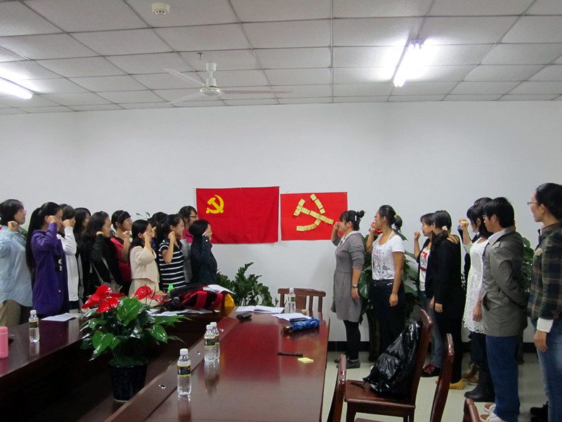 人文传播学院研究生党支部于11月26日晚,在学院会议室组织开展了关于学习十八大精神的座谈会,研究生党支部书记白多主持会议。 借此学习党的十八大精神的机会,党支部通过表决的方式发展接收了新一批研究生预备党员和正式党员,新发展的预备党员和正式党员结合十八大精神和自身情况作了积极的思想汇报。 在支部书记白多的引导下,各位研究生党员针对党的十八大报告中的热点问题,结合高校教育体制等问题,依次发表了自己的看法。整个会场气氛热烈,大家围绕自己的学术科研、工作生活等方面的问题进行了较为积极和深入的探讨。对学习和生活中遇到的问题和困惑,大家更是热情地提出可能性的意见和有效的解决方法,体现出了研究生团结一致的精神风貌。 为了给党的十八大献上自己的祝福,全体研究生支部党员每人写了一句对党和国家的祝福,贴成党旗的图案,作为献给党的礼物。最后,所有与会党员面对党旗,郑重宣读了入党誓词,重温了入党时的庄严和激动心情,场面温暖感人。