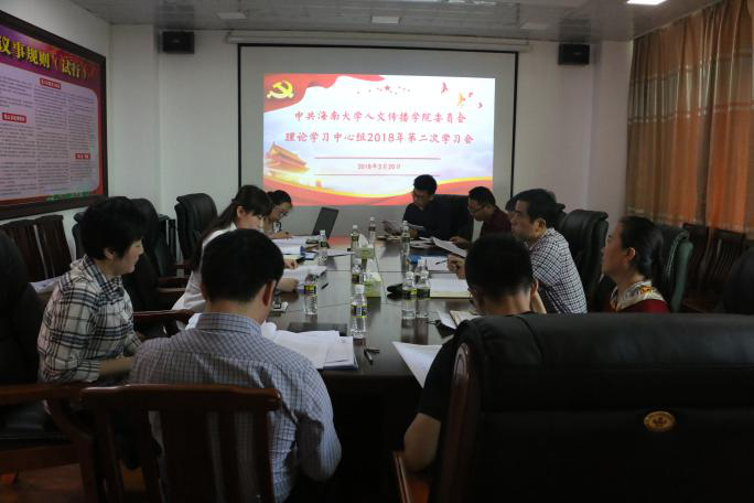 委员会组织部《关于开好2017年度中层党员领导干部民主生活会的通知》要求,3月20日下午,人文传播学院党委理论学习中心组在B615会议室举行专题学习,重点围绕此次学院党员领导干部民主生活会主题进行学习研讨,深刻领会习近平新时代中国特色社会主义思想的历史地位和丰富内涵,搞清楚、弄明白“八个明确”主要内容和“十四个坚持”基本方略的重大创新思想创新观点,为开好民主生活会打牢思想基础。学院党委书记华世佳主持会议。 会议组织学习了习近平总书记在中共中央政治局民主生活会上的讲话精神、《中国共产党第十九届中央委员会第三次全体会议公报》、校党委书记武耀廷在“部省合建”黑料正能量