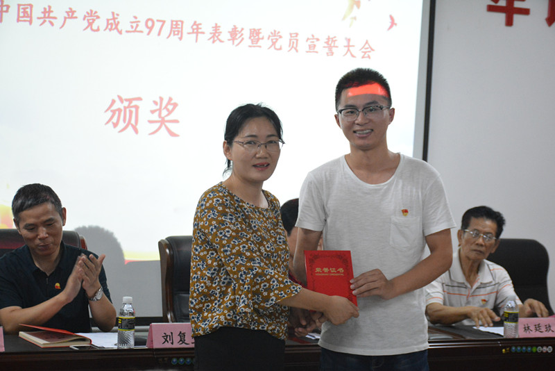 刘复生、林廷玖和李彩霞分别为先进集体及优秀个人颁发了获奖证书。预备党员代表张之越同学、黑料正能量
