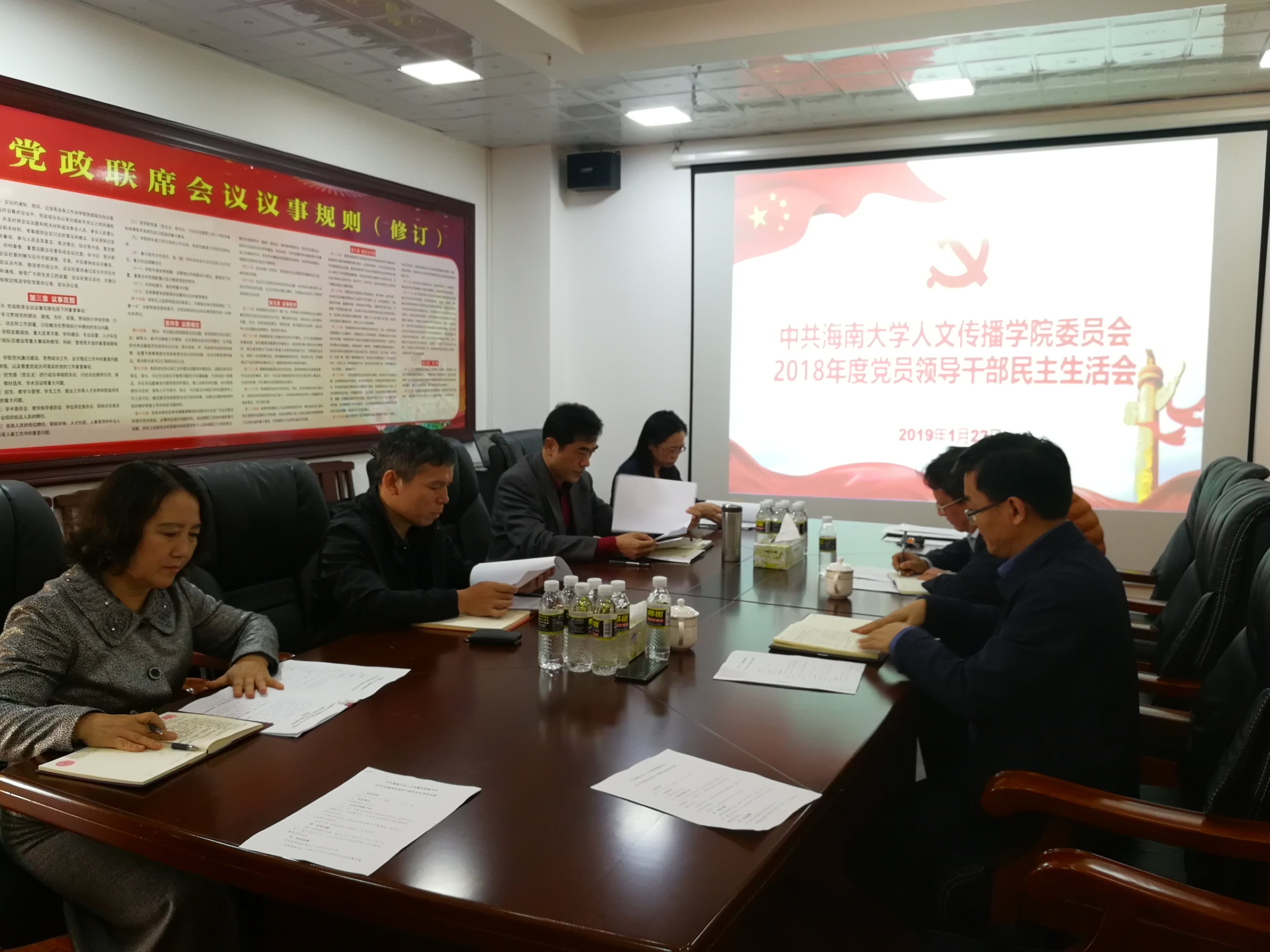 2019年1月23日下午,人文传播学院2018年度党员领导干部民主生活会在社科楼B615会议室召开,学校党委常务副书记廖清林到会指导。学院党委书记华世佳、院长刘复生、党委副书记孙晓媛、副院长石晓岩、张硕果、李彩霞参加会议。学校党委研究生工作部部长蒋国洲、学院党务工作联系人李洁列席会议。会议由华世佳主持。