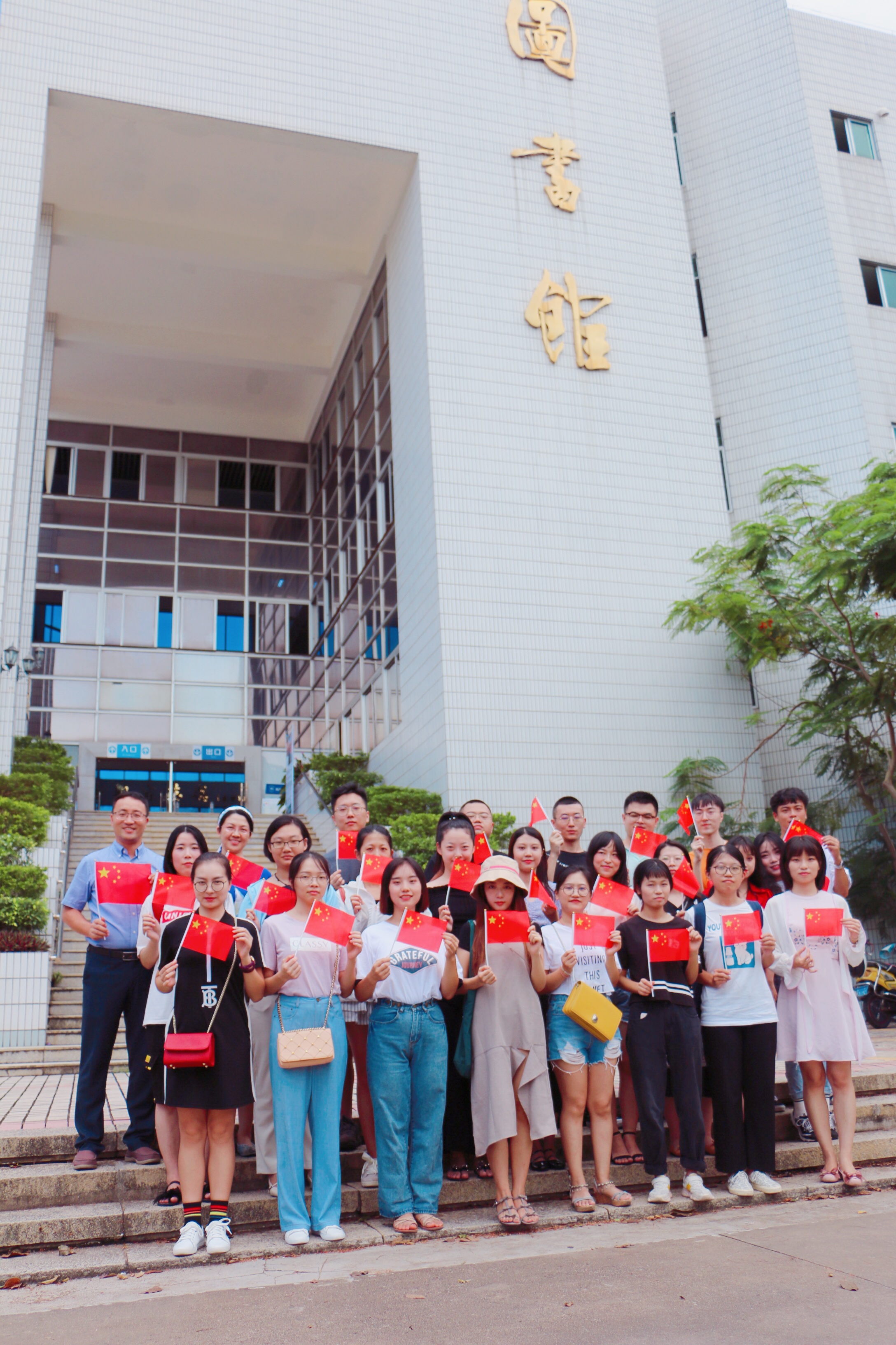 正值一天中最炎热的时候,参加活动的党员及积极分子们早早地来到了图书馆门前的广场。活动首先由支部支委为每个人分发了手持的国旗;之后大家对合影的地点和方式各抒己见;最后参与活动的全体党员与积极分子在选定的地点与国旗进行了合影。