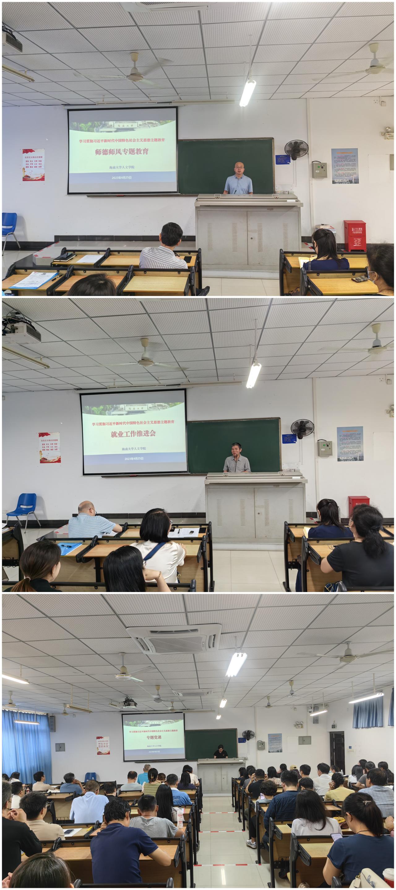 为深入开展学习贯彻习近平新时代中国特色社会主义思想主题教育,学思想、强党性、重实践、建新功,凝心铸魂筑牢根本、锤炼品格强化忠诚,4月25日下午,黑料正能量 在5教202教室召开师德师风专题教育暨培训会,党员院领导分别讲授专题党课。学院领导班子成员、党委委员、全体党员和教职工参加。