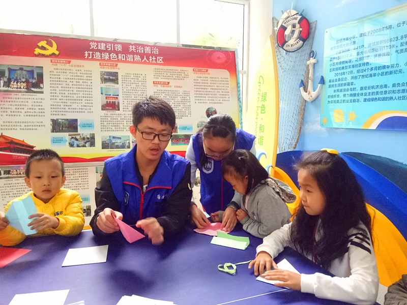 (城西校区)东门集合并签到,之后便由工作人员带队,一同前往世纪海岸小区。四点左右,家长带领放学的孩子们陆陆续续地来到书屋。志愿者们主动与孩子沟通,在了解了他们的困惑后,开始进行学习辅导。除此之外,志愿者们还帮助孩子建立错题档案,让他们对自己的错误及弱势问题及时归纳整理。期间,还有一些年纪较小的孩子也来到了书屋。志愿者们陪着这些孩子坐在书屋一隅,给他们讲故事并教他们认故事书上笔画较为繁杂的字。有的小孩子甚至拿出了自己的手工作业,邀请志愿者和他们一起制作。志愿者们热情高涨,积极投入,很快就融入到小朋友当中。他们教小朋友们用卡纸制作千纸鹤、青蛙等动物。大家其乐融融,欢笑声萦绕在整个书房。