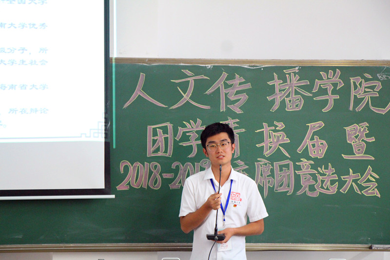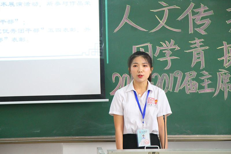人文传播学院团学青总结大会暨2018-2019届主席团竞选大会于海甸校区顺利召开。学院党委副书记孙晓媛,学工办主任公衍峰,团委书记熊文军出席本次大会。