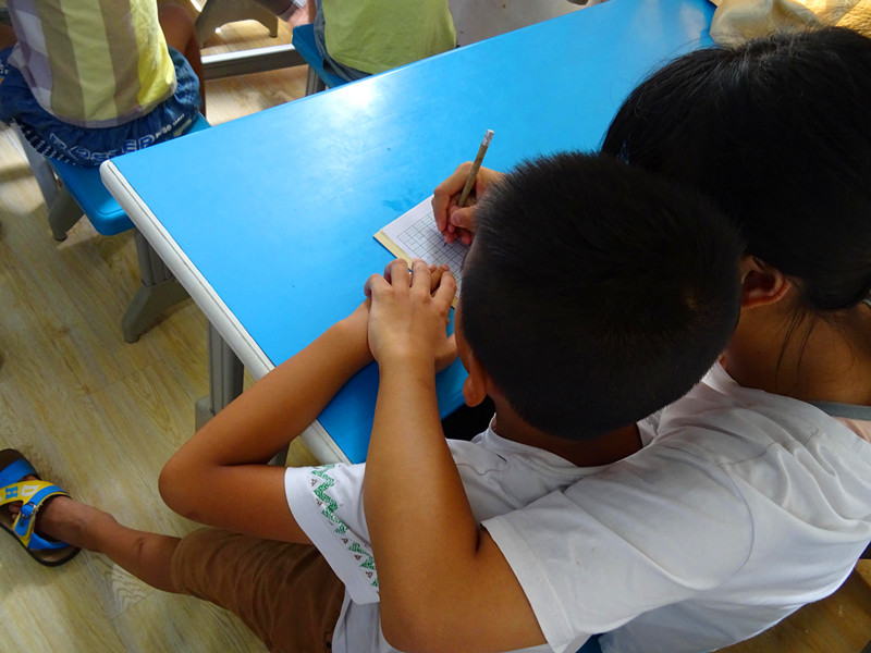 人文传播学院“守护者”团队走进海口市天翼特教培训学校。该校对自闭症儿童实行分班制教学,设立小、中、大三个班型。教室采取桌椅式布局,学生基本可以独立上课,并能不同程度地与老师进行课堂互动。课程安排较为固定,将数学、语文、写字、艺术等普通课程与感统训练、蒙氏课、奥尔夫音乐等特殊教育方法相结合,旨在使特殊儿童在学习知识的同时加深对于外界的感知。活动中,团队成员以“一对一”的方式深入课堂,参与教学环节。课堂上,队员们陪伴在需要帮助的孩子身边,协助他们完成老师的课堂指令,并纠正其不恰当的行为。为了更好的帮助孩子,队员们学着用更适当的方式与孩子们交流,采用个性化方法对待不同的个体,并采取即时奖惩的方式帮助他们树立正确的价值观念。通过几天的相处,志愿者对于特教机构的课堂模式更为熟悉。在这一过程中,实践队员们不仅增加了对自闭症儿童治疗现状的认识,也与性格各异的孩子们建立了深厚的情谊。