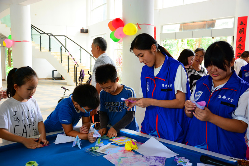 志愿者陪孩子们折纸