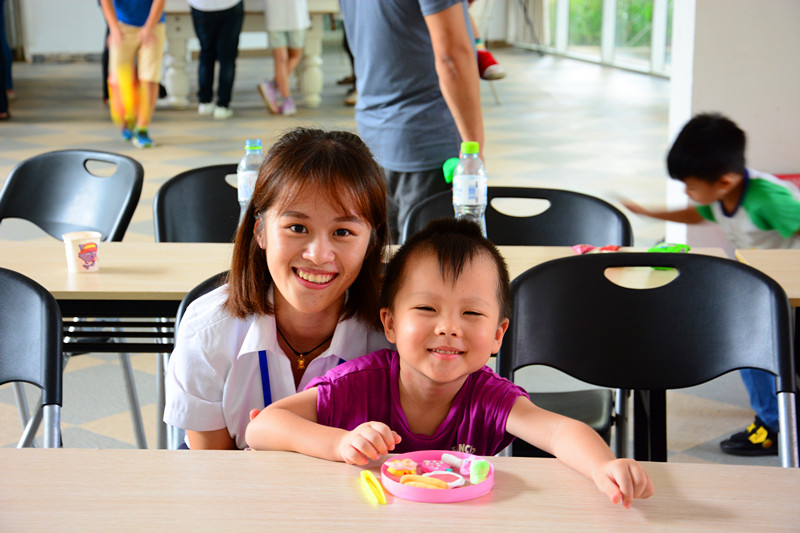 活动以讲述“什么是真正的友谊”的动画短片开场,观看动画短片后,孩子们都各自发表了对友谊的看法,描绘出他们心目中真正的“友谊”,他们天真质朴的语言引来家长们与志愿者们会心的欢笑。随后,活动进入游戏环节。志愿者们先向孩子们演示了游戏内容并仔细讲解了游戏规则,在志愿者们生动易懂的解说下,孩子们迅速理解了游戏规则,并积极参与游戏。在工作人员的精心设计中,每一个小游戏都被赋予了特殊的含义:游戏“爱的接力”需要两个家庭共同完成,考验孩子们的相互配合与沟通能力,也帮助家长们更加了解孩子们的内心想法;“沙包投掷”着重考验孩子们的集体协作能力;捏太空泥、绘画、折纸等一系列游戏,鼓励孩子们自由创作,充分发挥各自他们的想象力和创造力。活动现场气氛热烈,孩子们完成作品后便迫不及待地向家长们与志愿者们展示。