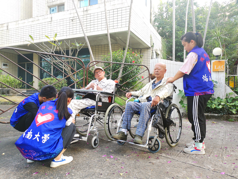 老人与志愿者聊天时,谈及自己的儿女、谈及海南本地的风土人情、谈及自己的人生过往、谈及志愿者们的学业,时光虽匆匆,但老人们脸上都是幸福与满足。在活动结束时,老人与志愿者们依依不舍,共约明年再见。