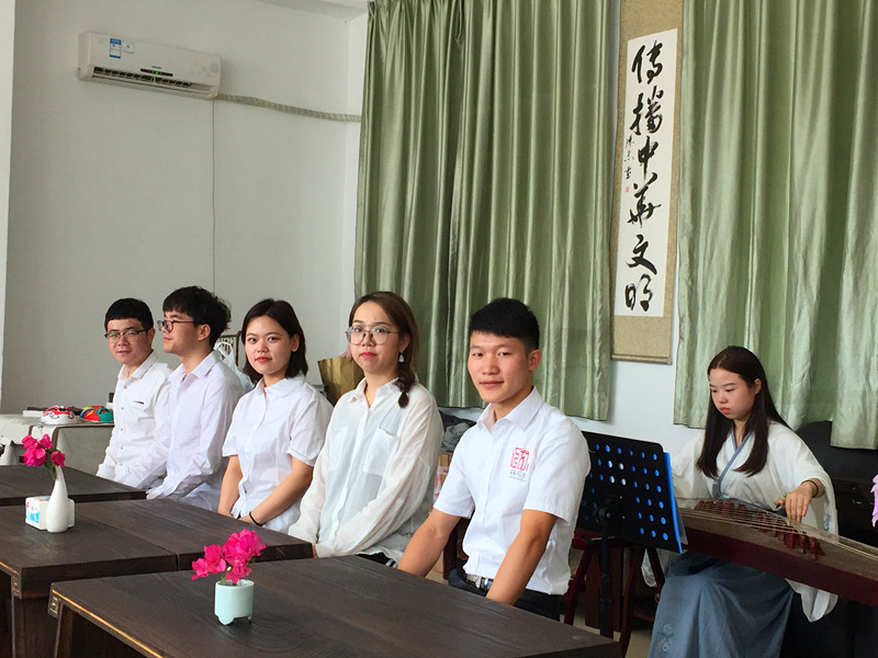 临别之际,中日学生互换联系方式。孙晓媛副书记还为每位日本友人送上临别赠礼——海南当地的五指山红茶和白沙绿茶,希望中国茶文化能不断增进中日青年学生间的友好交流。