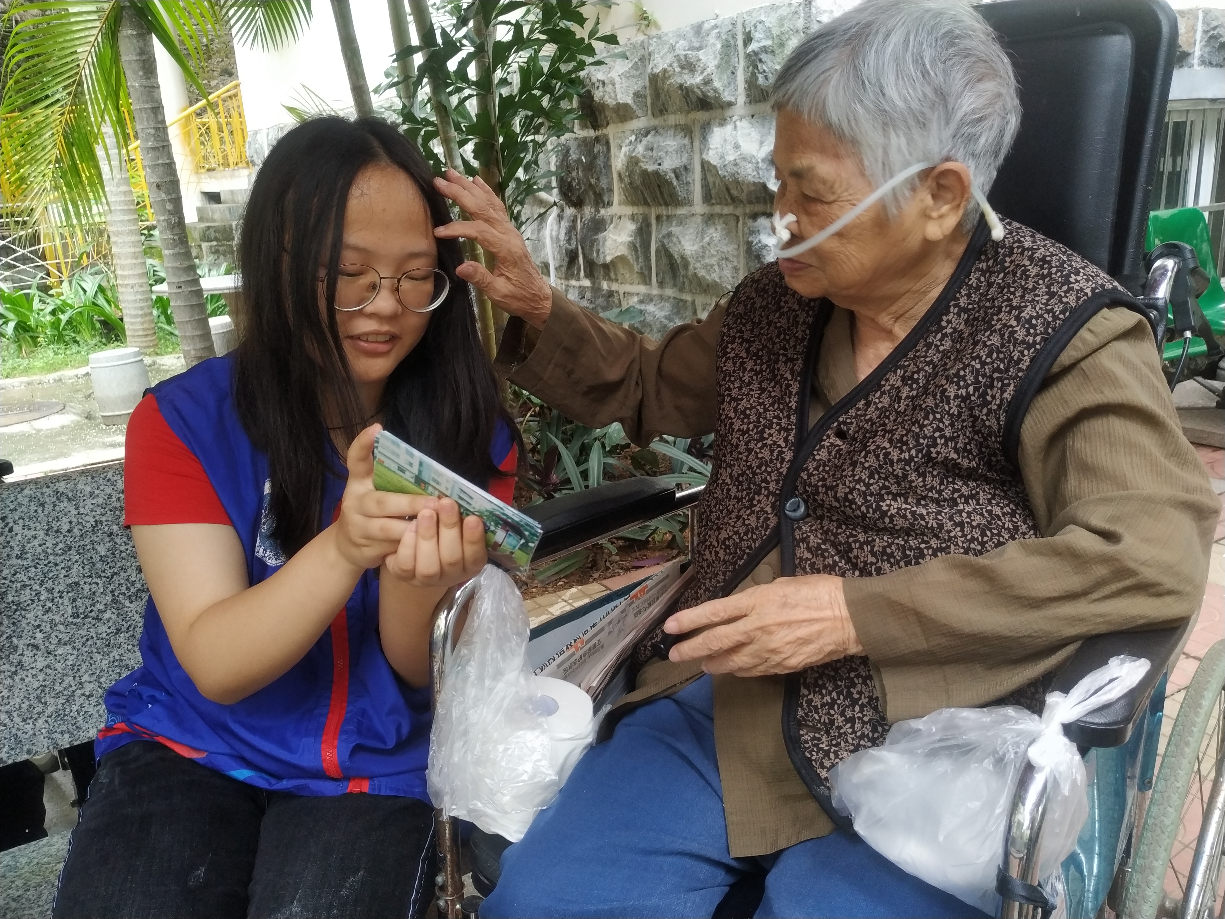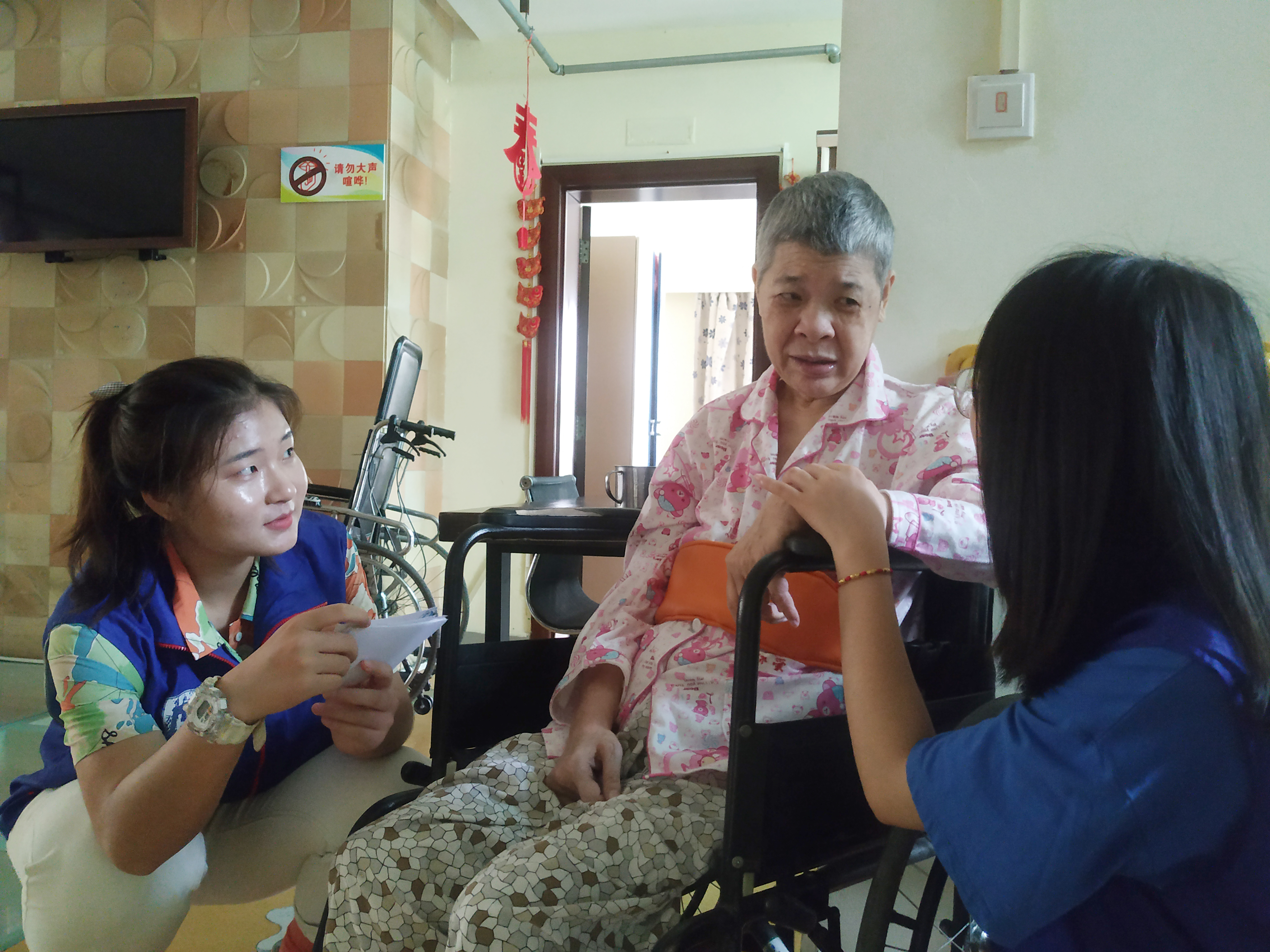 在本次“折纸童思,情溢夕颜”感恩特别活动中,志愿者们带来了海口市红联小学的孩子们在“食指联心,文思童行”支教活动中做好的“礼物”——手绘卡片,并将这些饱含祝福的卡片亲手送给老人们。考虑到部分老人看不清卡片上的字,志愿者们便坐在老人身旁,将卡片上的稚嫩话语读给老人们听,将卡片上的图画描绘给老人们看。志愿者们还一边帮老人们捏肩捶腿,一边陪老人聊天话家常,老人们脸上的笑意更浓了,室内一片其乐融融的景象。