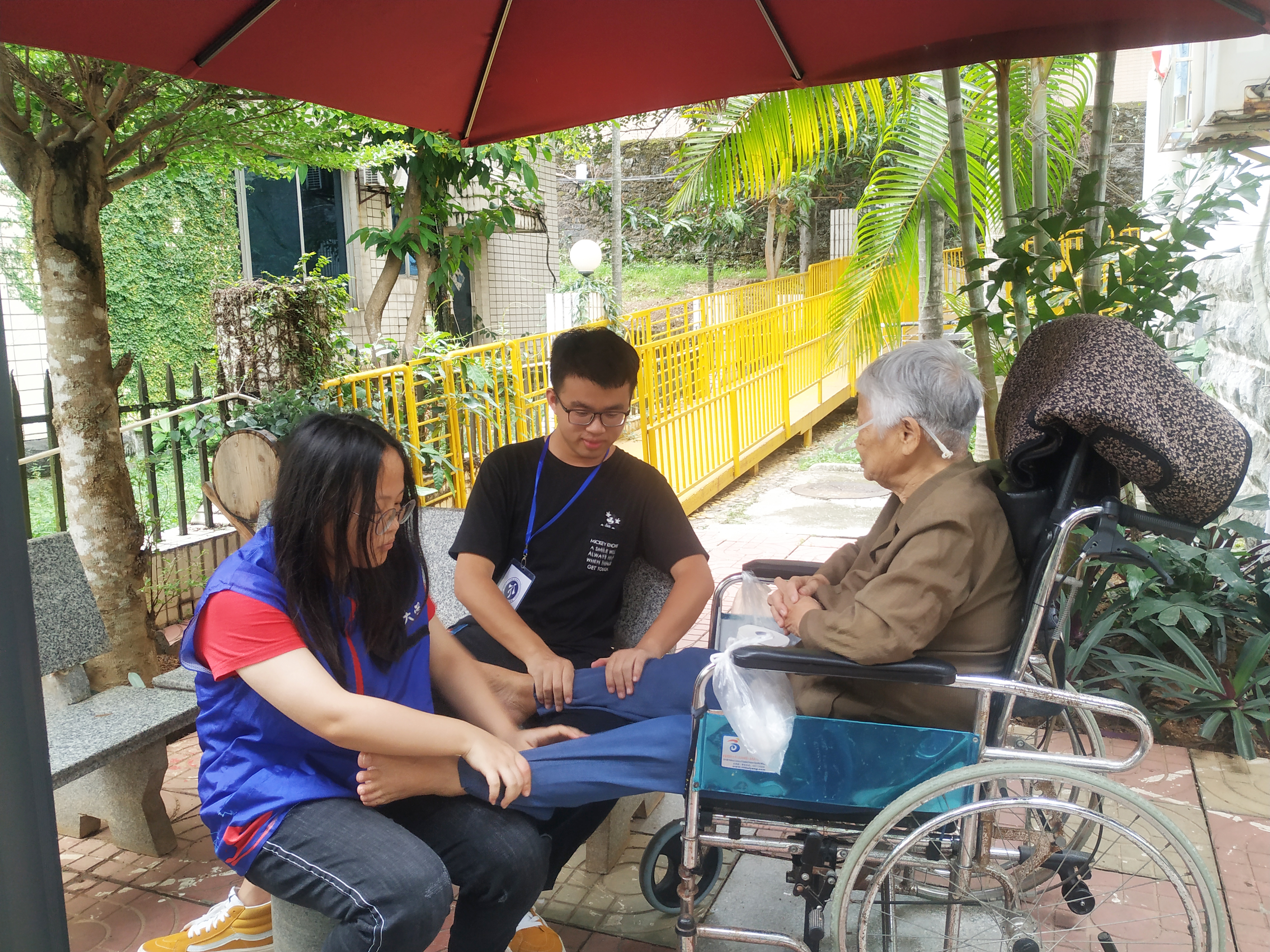 城西校区西北门集合完毕后统一乘车前往海口市L&C老年公寓。到达活动地点后,带队人员向志愿者分发志愿者服及矿泉水等物资后,强调了注意事项。按区域进行分工后,志愿者们迅速投入了工作状态。