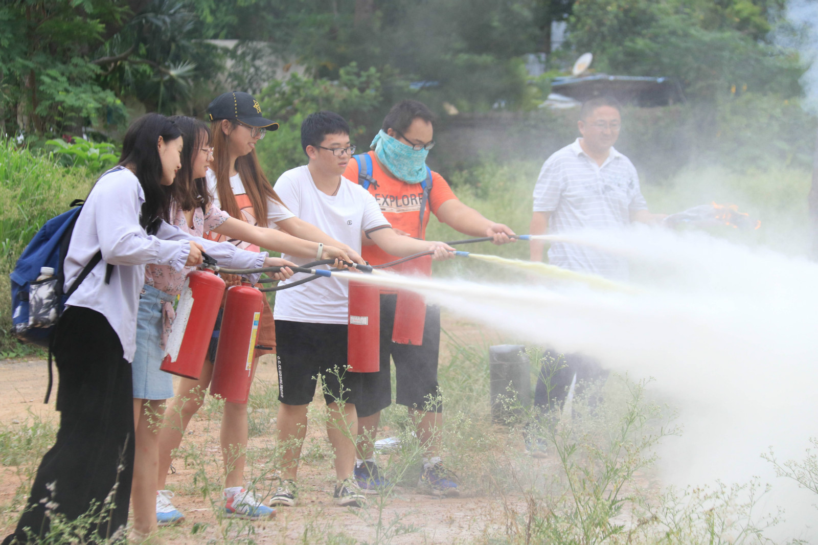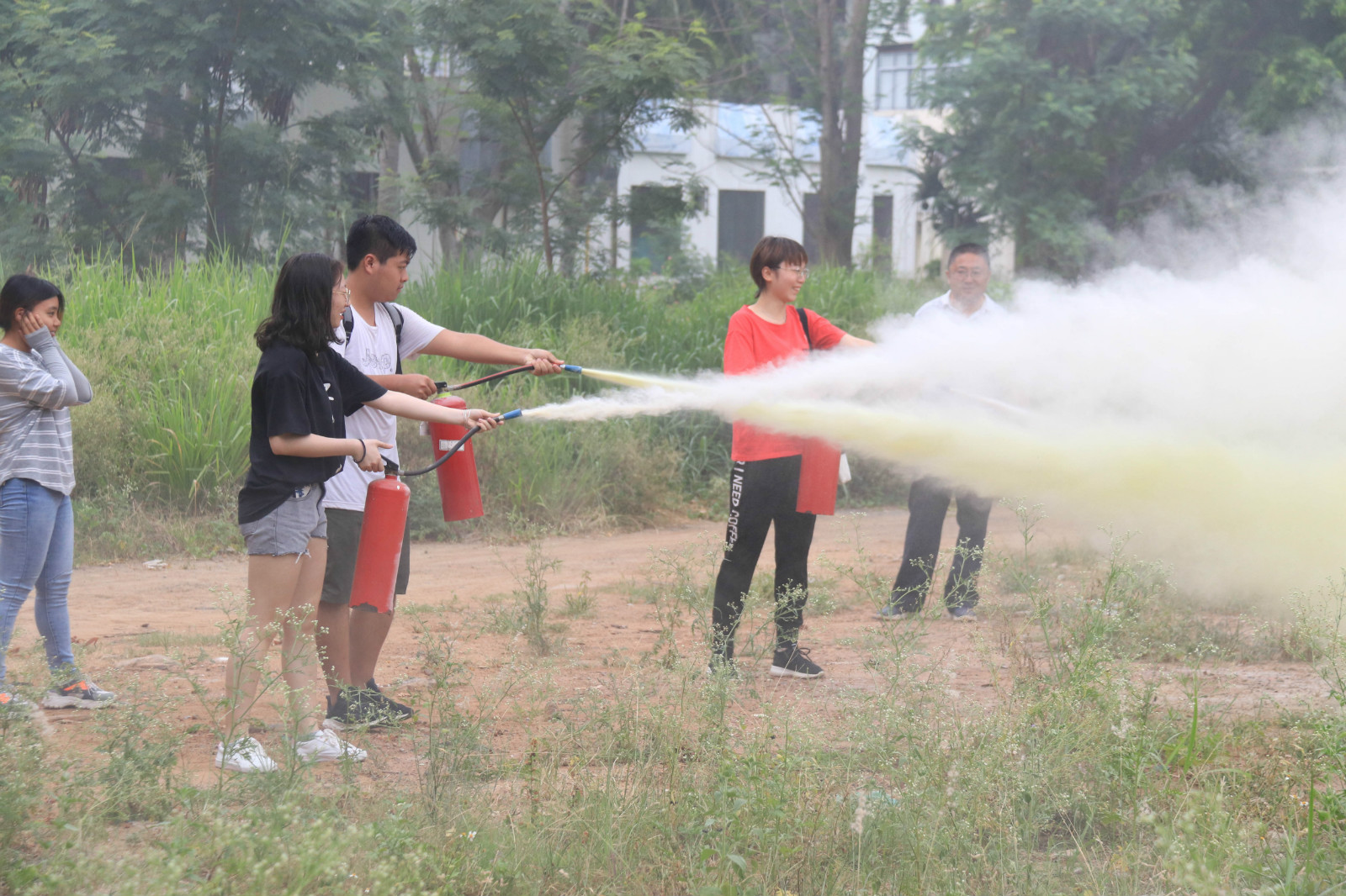 活动第二部分消防安全演练活动。为了让大家进一步学习救火方法,掌握使用消防器材,王智老师对灭火器的构造和使用时的注意事项进行了讲解,并且向大家演示了灭火器的使用。同学们积极参与到实践使用灭火器灭火的过程中,大家对于“灭火”的理解不再限于口头上的理论,而是进一步地付诸于实践,掌握了一些急救技能。