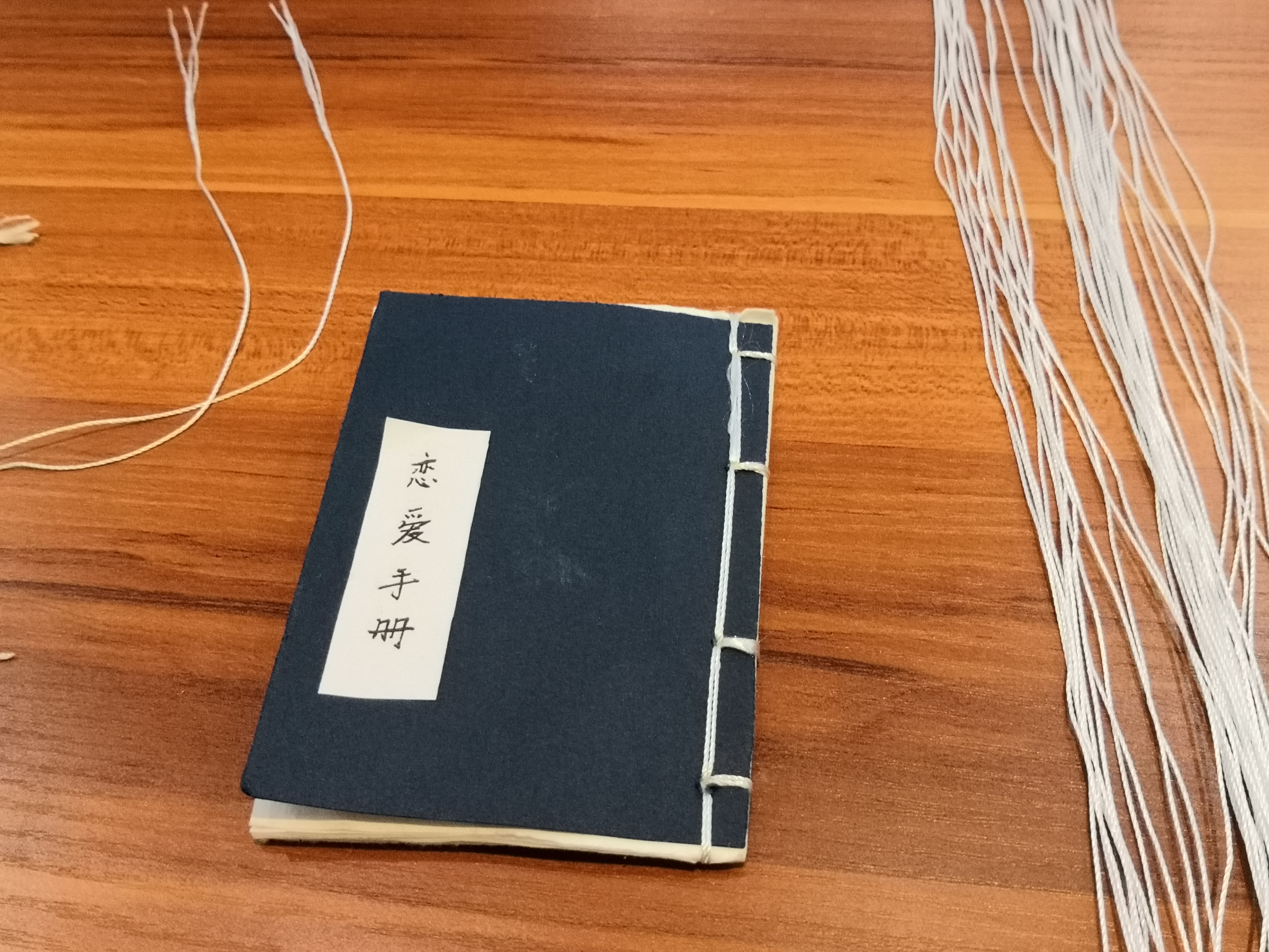 在线装书制作体验区,前来学习线装古籍制作工序的同学们络绎不绝,许多汉语言文学专业的同学表示,“前不久在课堂上学习过的线装书制作过程,今天竟然可以亲身实践体验,真是太幸运啦,以后我要多多关注院内志愿服务活动!”制作一本小型线装书也会耗时较久,同学们与志愿者围在桌边专注地打孔、穿线,一本本精美小巧的线装书在他们手中诞生。