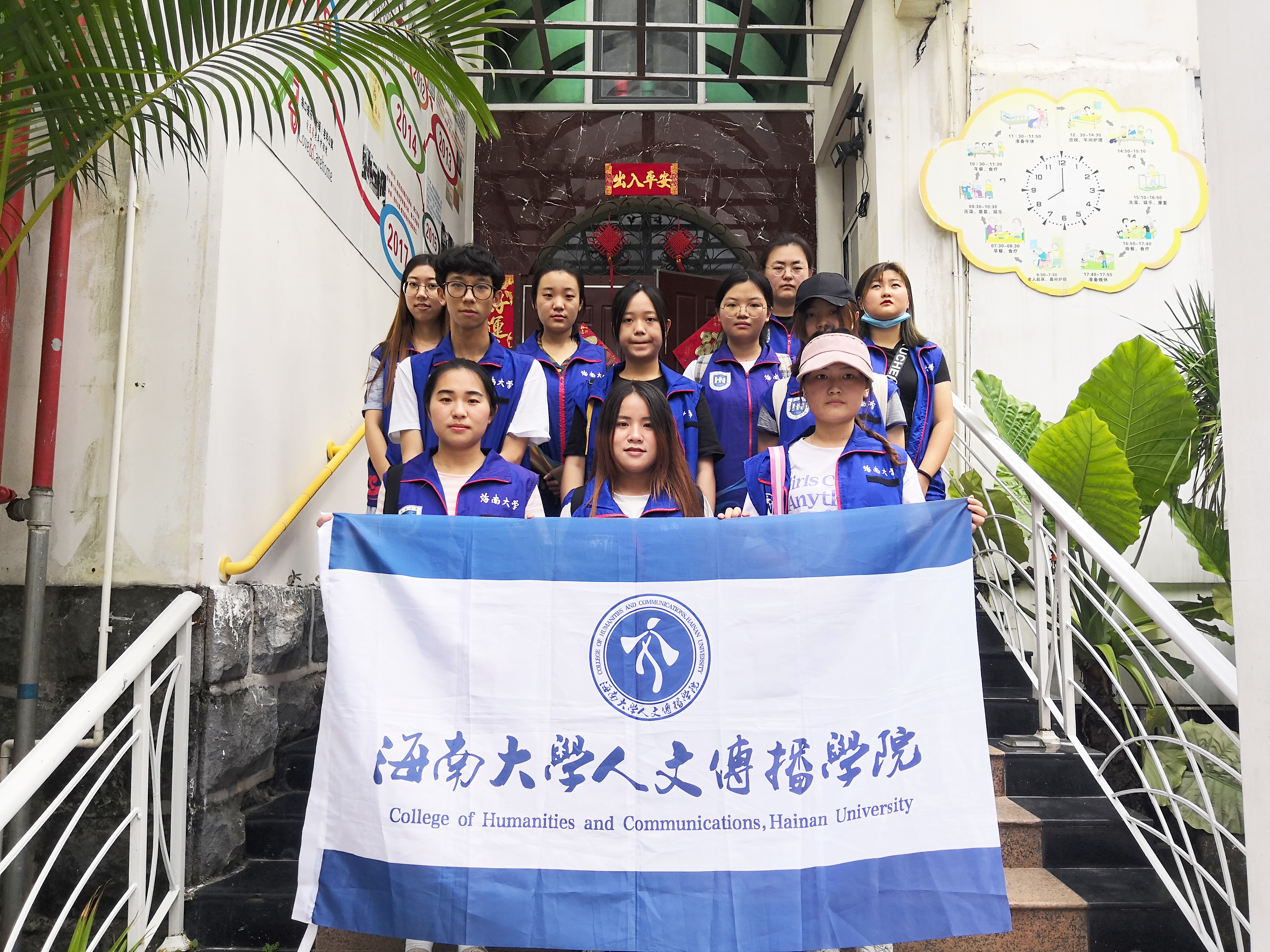 人文传播学院的12名志愿者在人文传播学院青年志愿者协会带队人员的带领下来到海口市L&C老年公寓,开展本学期最后一期“暖暖阳春日,赤赤敬老心”老年公寓爱老敬老活动。