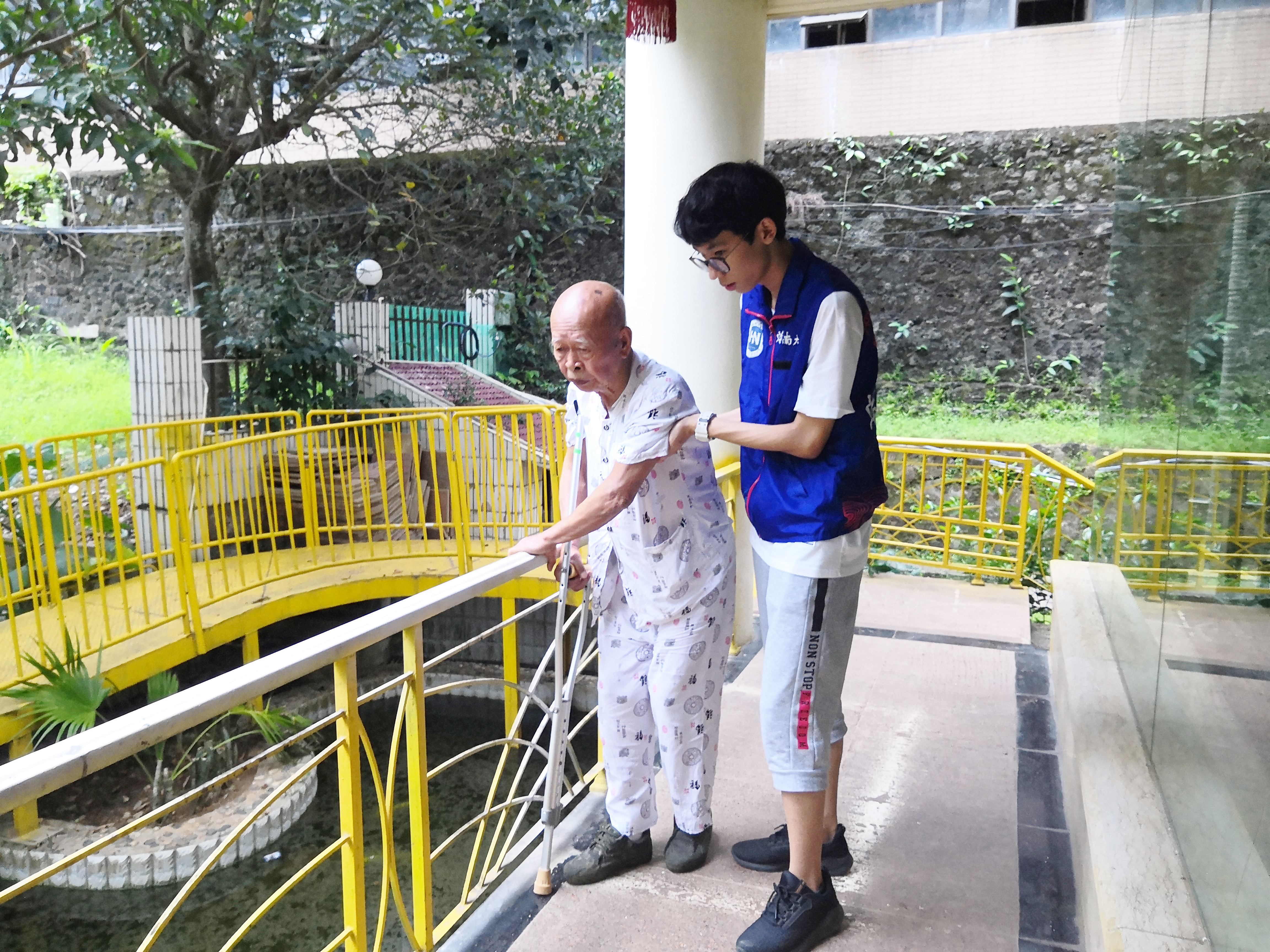 志愿者陪老人走路
