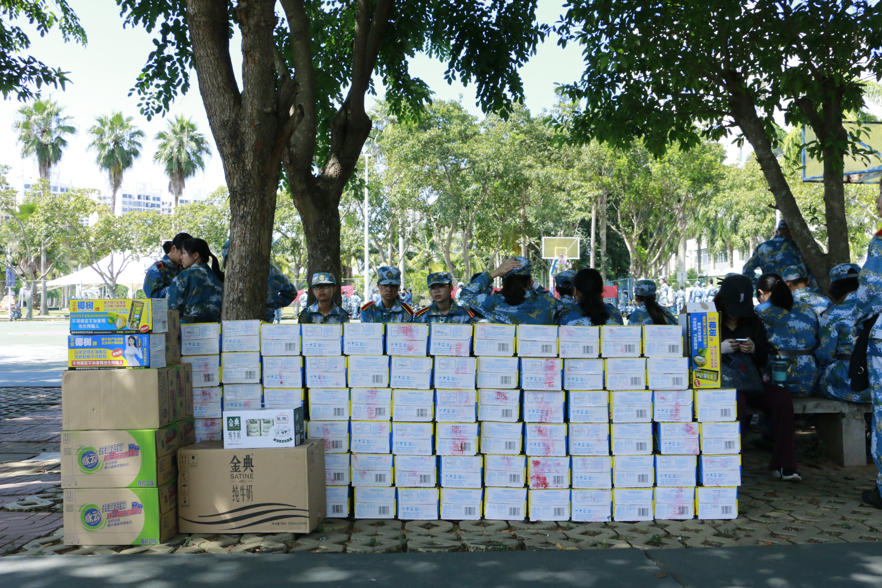 同学们领取慰问品