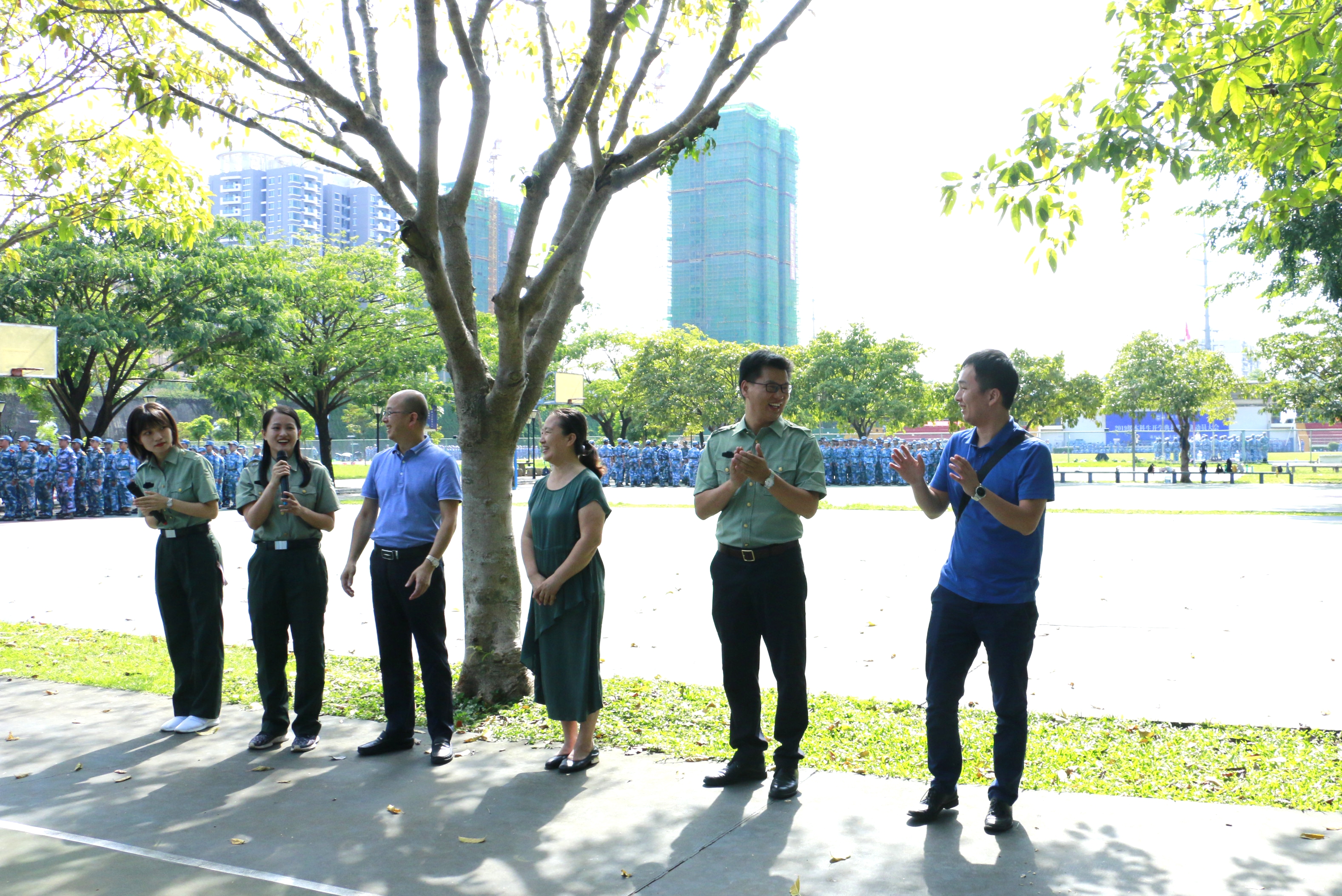 慰问活动中,邱华祥对带队教官这段时间的辛勤付出表示衷心感谢和诚挚敬意,同时肯定了同学们在军训中表现出的吃苦耐劳良好精神面貌。他勉励大家再接再厉,继续发扬吃苦耐劳的精神和科学严谨的作风,通过军训加强组织纪律性,提高身体素质,圆满完成军训任务。孙晓媛也表达了对同学们的关心,她表示对于刚刚步入大学的同学来说,这应该是在学校度过的第一个中秋节,希望2019级的本科新生能够感受到学院对各位同学的关怀,度过一个美好的节日。