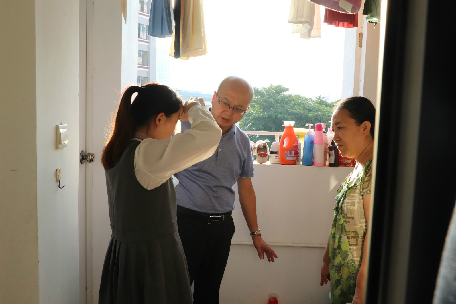 在两天的宿舍走访过程中,领导和老师们重点检查宿舍阳台并强调,要“翻盆倒罐”,减少积水,注意卫生死角,从而达到从根源上预防蚊子产生的目的。同时,老师们与学生们展开亲切交谈,询问学生们的学习生活情况和对新校区新环境的适应情况。并围绕着同学们的食、住、行等方面就如何有效防止蚊虫叮咬做出具体指导。期间,领导老师与同学们就宿舍门口标志牌外观、物品摆放、窗户玻璃干净程度等安全卫生问题提出改进意见。